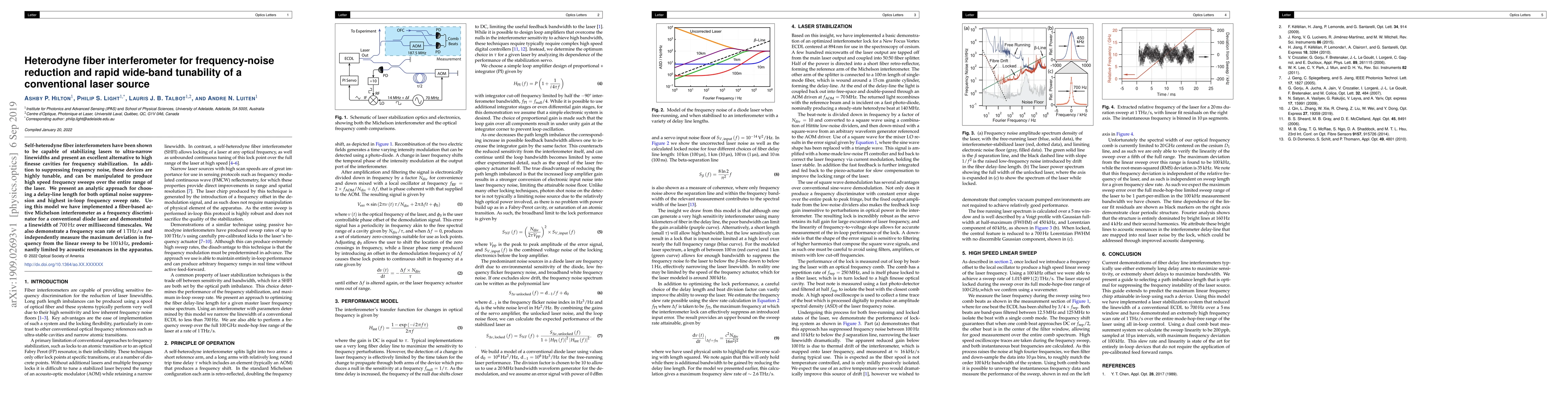 Self-heterodyne fiber interferometers have been shown to be capable of stabilizing lasers to ultra-narrow linewidths and present an excellent alternative to high finesse cavities for frequency stabilization. In addition to suppressing frequency noise, these devices are highly tunable, and can be manipulated to produce high speed frequency sweeps over the entire range of the laser. We present an analytic approach for choosing a delay-line length for both optimal noise suppression and highest in-loop frequency sweep rate. Using this model we have implemented a fiber-based active Michelson interferometer as a frequency discriminator for a conventional diode laser and demonstrated a linewidth of 700 Hz over millisecond timescales. We also demonstrate a frequency scan rate of 1 THz/s and independently measure the maximum deviation in frequency from the linear sweep to be 100 kHz, predominantly limited by acoustic resonances in the apparatus.