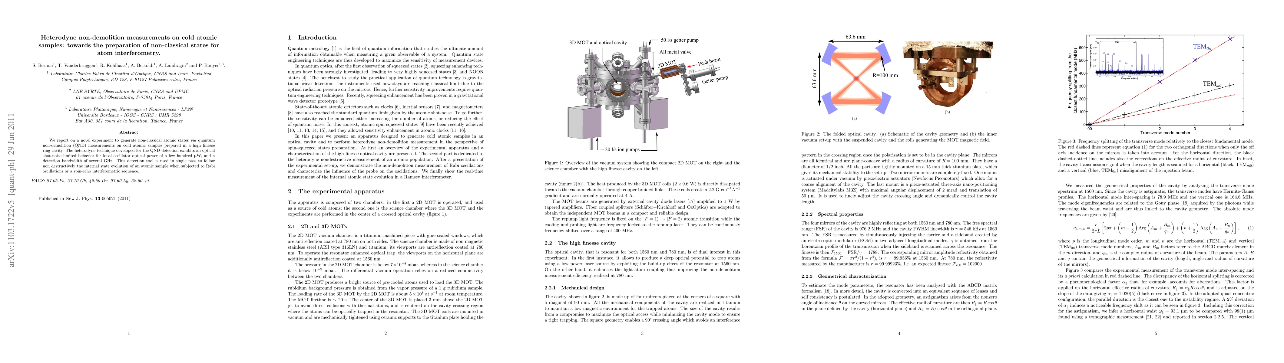 This paper presents a novel experiment using heterodyne non-demolition measurements in a high finesse ring cavity to generate non-classical atomic states. The developed technique achieves optical shot-noise limited detection, enabling non-destructive monitoring of atomic state evolution during Rabi oscillations or spin-echo interferometry.