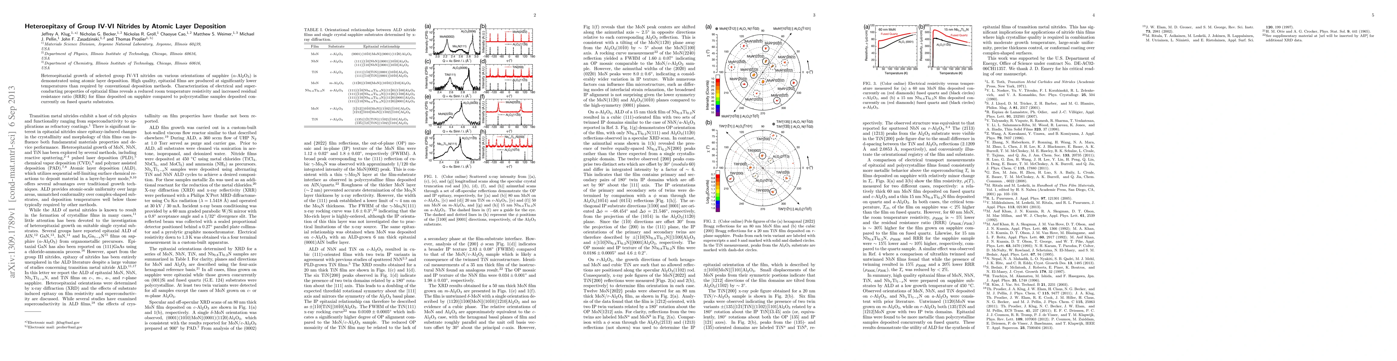 This paper demonstrates the heteroepitaxial growth of group IV-VI nitrides on sapphire using atomic layer deposition at lower temperatures, resulting in high-quality films with improved electrical properties compared to polycrystalline samples.