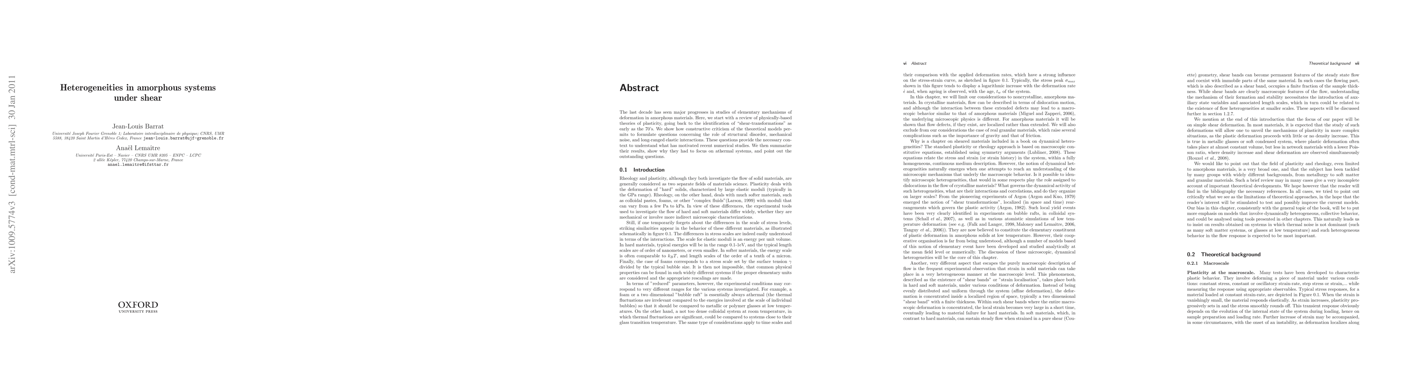 This paper reviews theories of plasticity in amorphous materials, discussing the role of structural disorder, mechanical noise, and long-ranged elastic interactions. It summarizes recent numerical studies focusing on athermal systems and highlights outstanding questions in understanding deformation mechanisms.