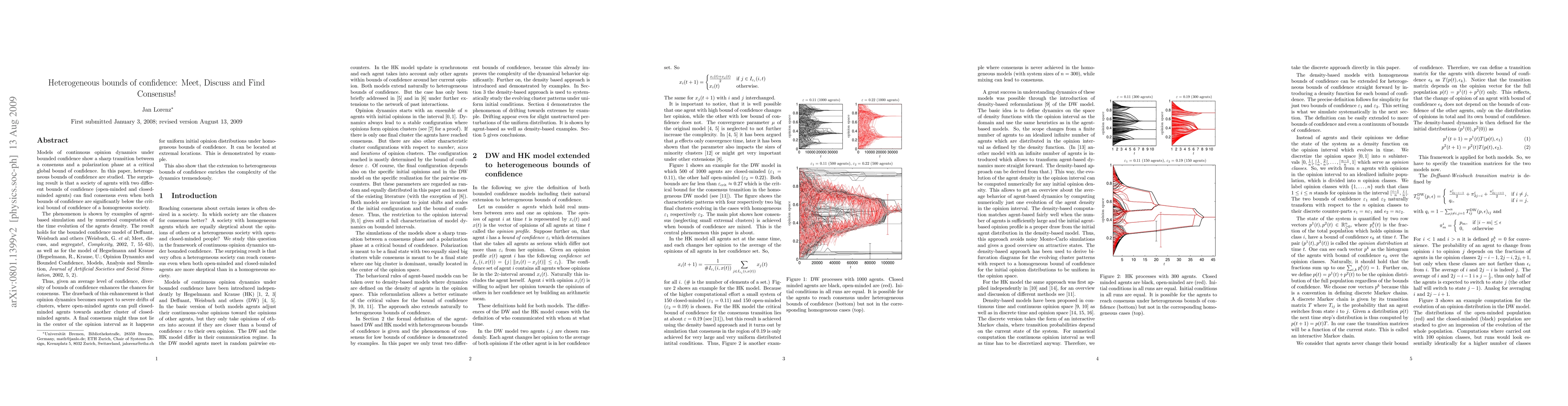 This paper explores how societies with diverse confidence bounds can achieve consensus despite lower confidence levels compared to homogeneous societies. It demonstrates through simulations and numerical computations that heterogeneity in confidence bounds can lead to unexpected consensus, though it may result in opinion clusters drifting to extreme opinion locations.