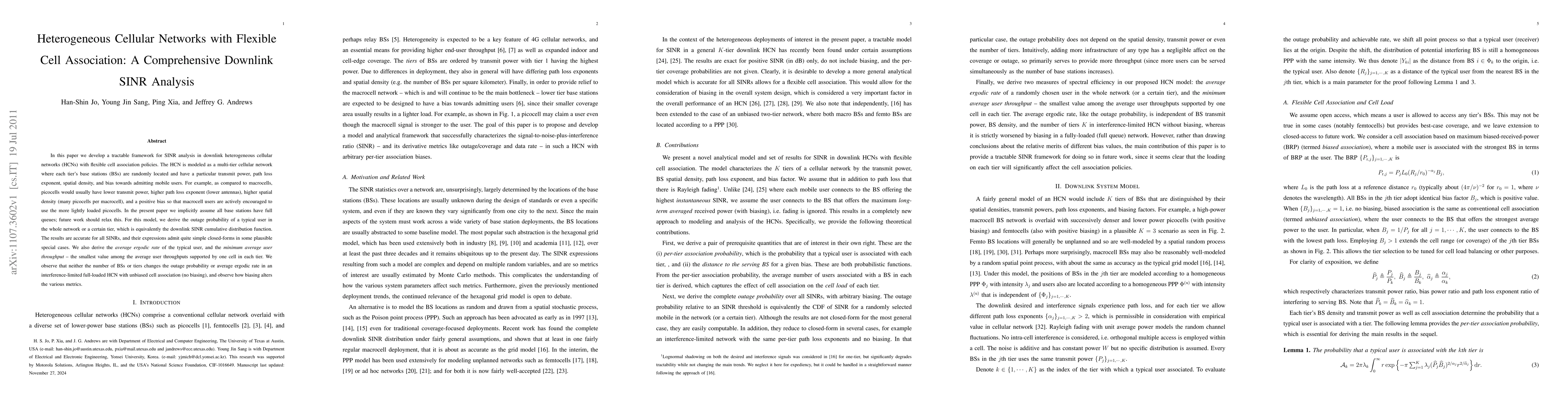 This paper develops a framework for analyzing the downlink Signal-to-Interference-plus-Noise Ratio (SINR) in heterogeneous cellular networks (HCNs) with flexible cell association policies. The study derives expressions for outage probability, average ergodic rate, and minimum average user throughput, revealing how network biases affect performance metrics.