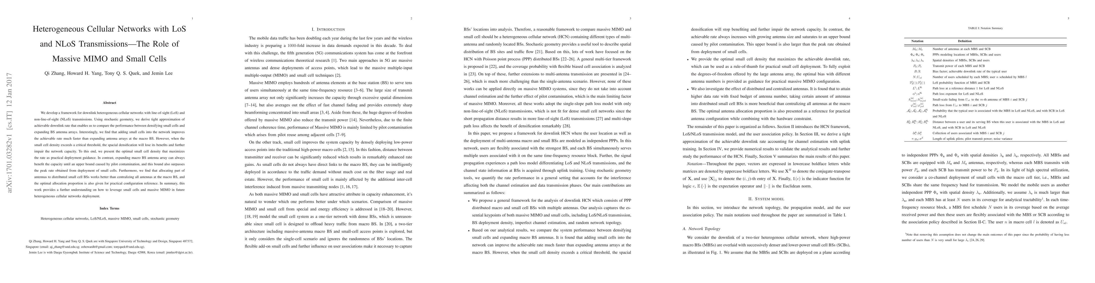 This paper develops a framework for evaluating downlink heterogeneous cellular networks with LoS and NLoS transmissions, finding that small cell densification improves achievable rates faster than macro BS antenna expansion. It provides optimal small cell density and antenna allocation strategies to maximize network performance.