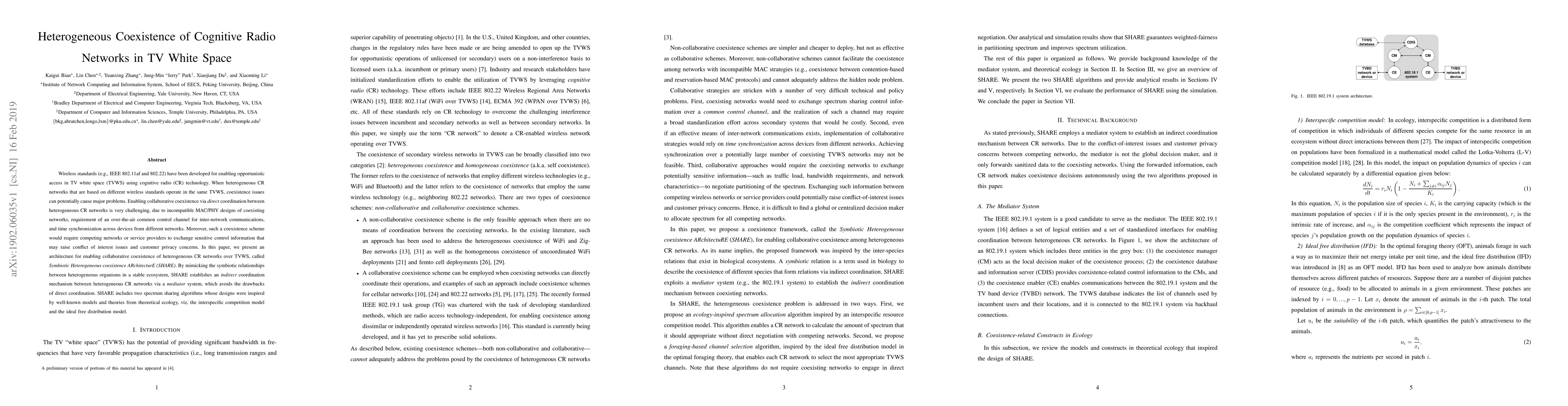 This paper proposes an architecture called SHARE to enable collaborative coexistence of heterogeneous cognitive radio networks operating in TV white space. SHARE uses indirect coordination through a mediator system to avoid the challenges of direct coordination, inspired by ecological models for spectrum sharing.