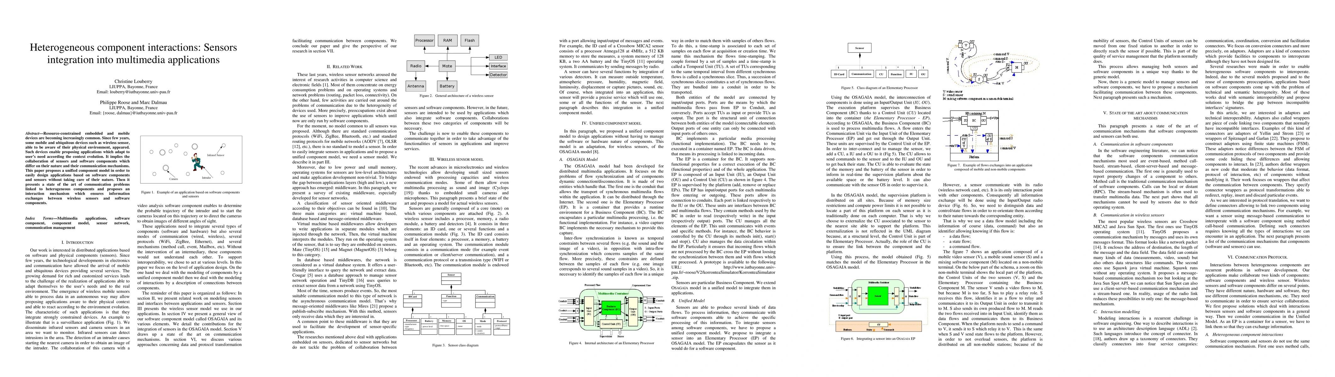 Resource-constrained embedded and mobile devices are becoming increasingly common. Since few years, some mobile and ubiquitous devices such as wireless sensor, able to be aware of their physical environment, appeared. Such devices enable proposing applications which adapt to user's need according the context evolution. It implies the collaboration of sensors and software components which differ on their nature and their communication mechanisms. This paper proposes a unified component model in order to easily design applications based on software components and sensors without taking care of their nature. Then it presents a state of the art of communication problems linked to heterogeneous components and proposes an interaction mechanism which ensures information exchanges between wireless sensors and software components.