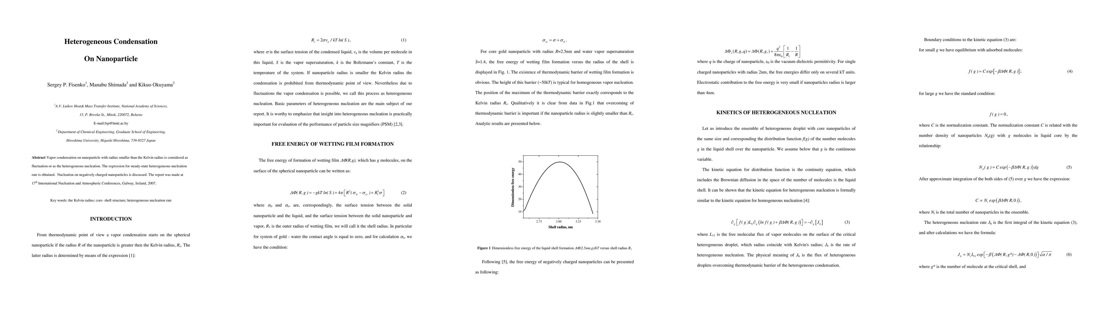 Vapor condensation on nanoparticle with radius smaller than the Kelvin radius is considered as fluctuation or as the heterogeneous nucleation. The expression for steady-state heterogeneous nucleation rate is obtained. Nucleation on negatively charged nanoparticles is discussed. The report was made at 17th International Nucleation and Atmospheric Conferences, Galway, Ireland, 2007.