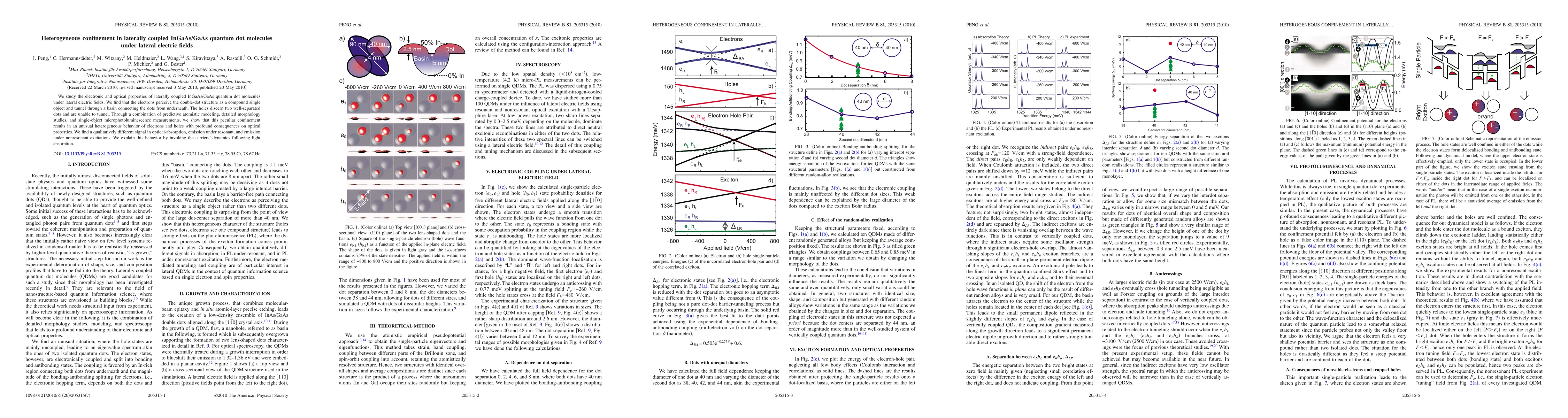 This study explores the electronic and optical behavior of laterally coupled InGaAs/GaAs quantum dot molecules under electric fields, revealing distinct confinement effects for electrons and holes, which significantly alter their optical properties. Predictive modeling and micro-photoluminescence measurements highlight the unique heterogeneous confinement observed.
