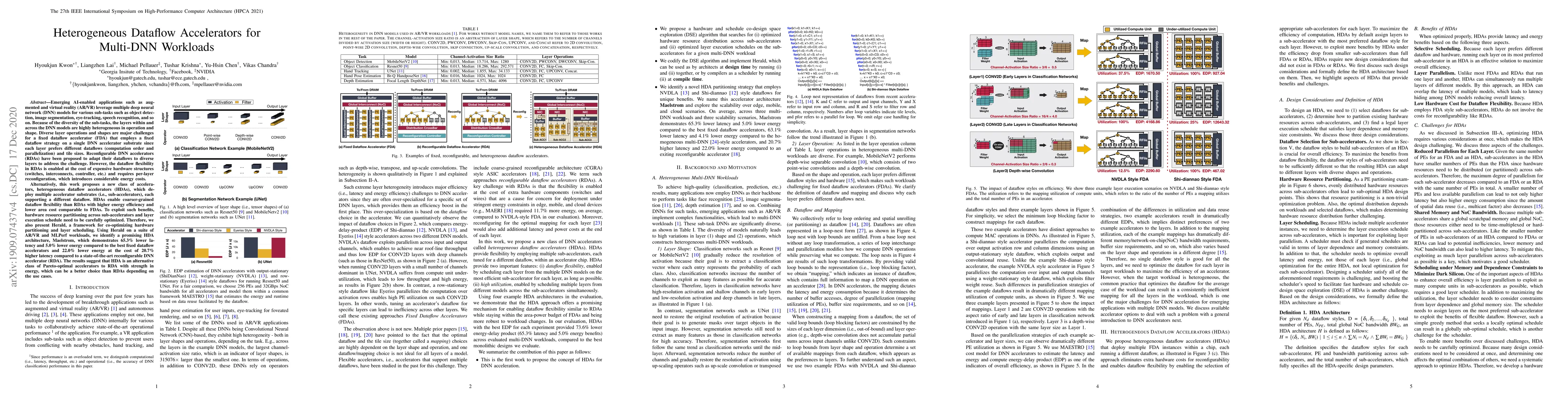 This paper proposes heterogeneous dataflow accelerators (HDAs) to address the challenges of layer heterogeneity in multi-DNN workloads. HDAs use multiple sub-accelerators with different dataflows, achieving higher energy efficiency and lower area costs compared to reconfigurable DNN accelerators (RDAs). The study introduces Herald for optimizing hardware partitioning and layer execution, and presents Maelstrom, a promising HDA architecture, which shows significant improvements in latency and energy efficiency over fixed dataflow accelerators and RDAs.