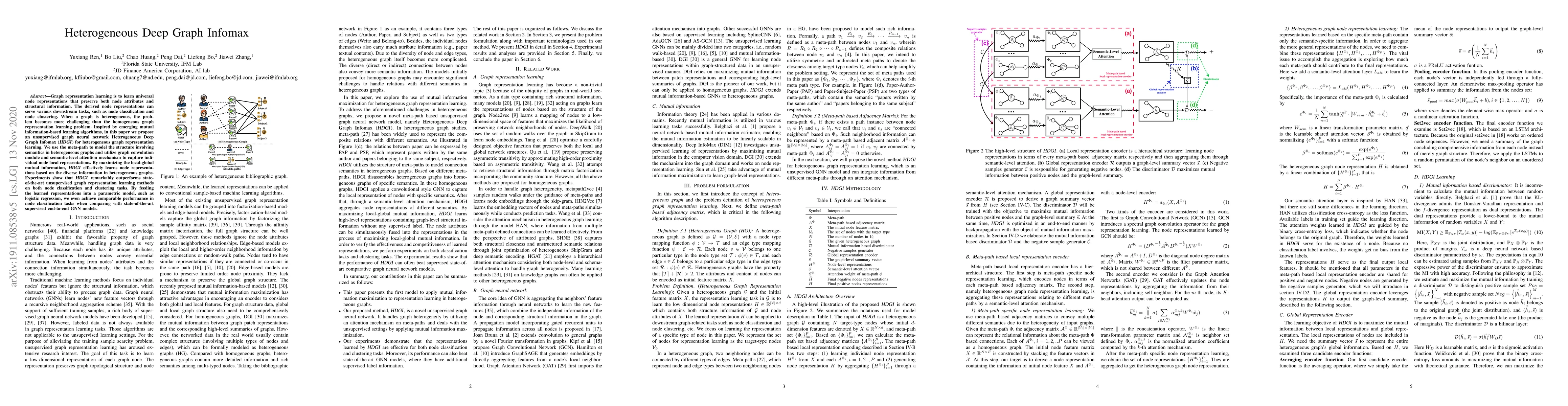 The paper proposes Heterogeneous Deep Graph Infomax (HDGI), an unsupervised graph neural network for learning representations in heterogeneous graphs. HDGI leverages meta-paths and attention mechanisms to capture local representations, achieving superior performance in node classification and clustering compared to existing methods.