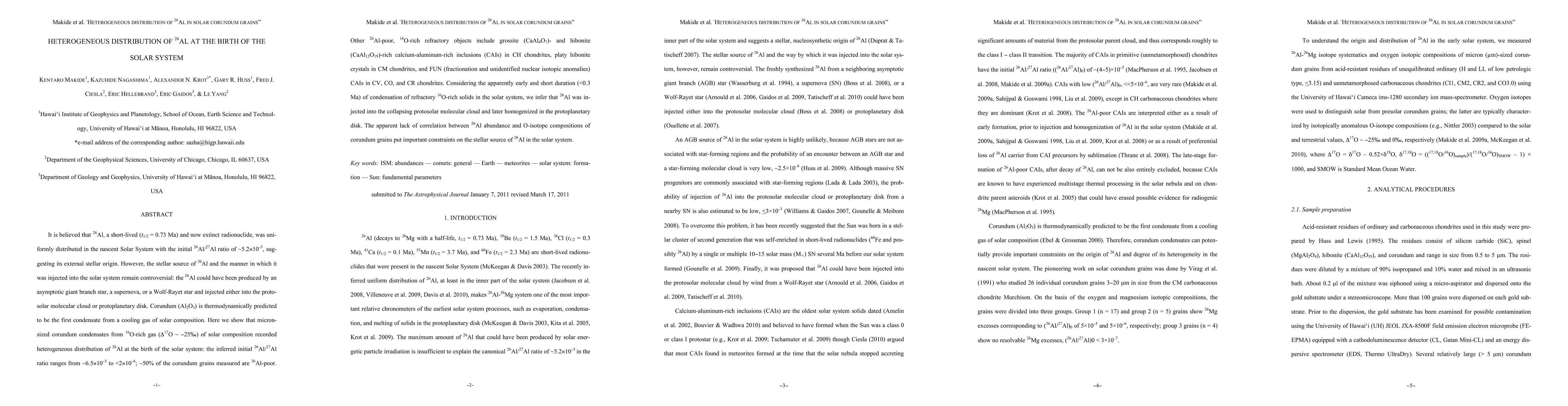 This paper reveals that Al-26, a short-lived extinct radionuclide, was not uniformly distributed in the nascent Solar System, as previously thought, but instead showed a heterogeneous distribution. The study suggests that Al-26 was injected into the protosolar molecular cloud and later homogenized in the protoplanetary disk, with significant implications for understanding the stellar source of Al-26.