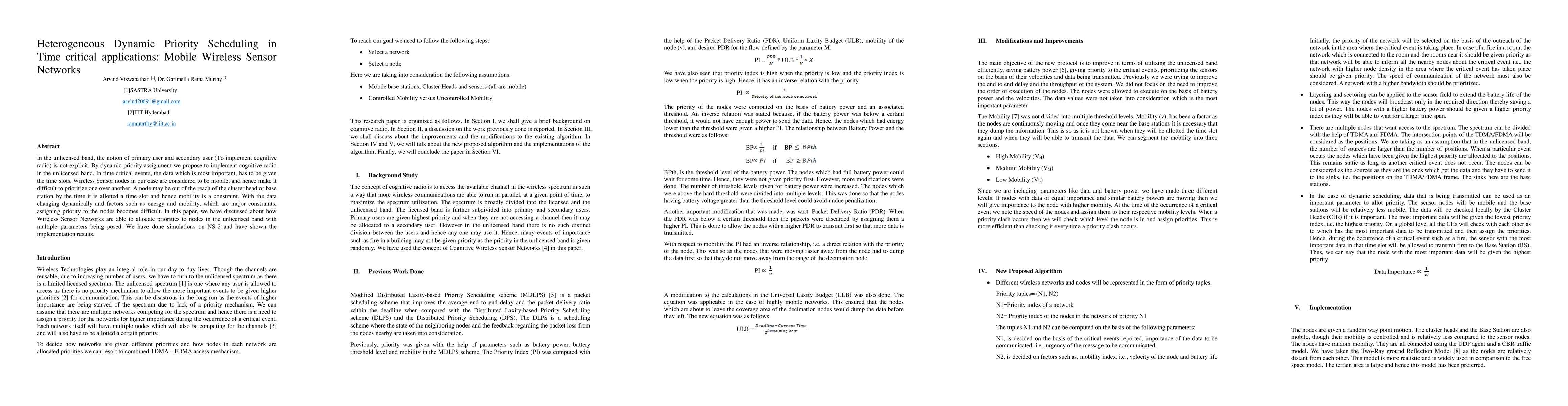 In the unlicensed band, the notion of primary user and secondary user (To implement cognitive radio) is not explicit. By dynamic priority assignment we propose to implement cognitive radio in the unlicensed band. In time critical events, the data which is most important, has to be given the time slots. Wireless Sensor nodes in our case are considered to be mobile, and hence make it difficult to prioritize one over another. A node may be out of the reach of the cluster head or base station by the time it is allotted a time slot and hence mobility is a constraint. With the data changing dynamically and factors such as energy and mobility, which are major constraints, assigning priority to the nodes becomes difficult. In this paper, we have discussed about how Wireless Sensor Networks are able to allocate priorities to nodes in the unlicensed band with multiple parameters being posed. We have done simulations on NS-2 and have shown the implementation results.