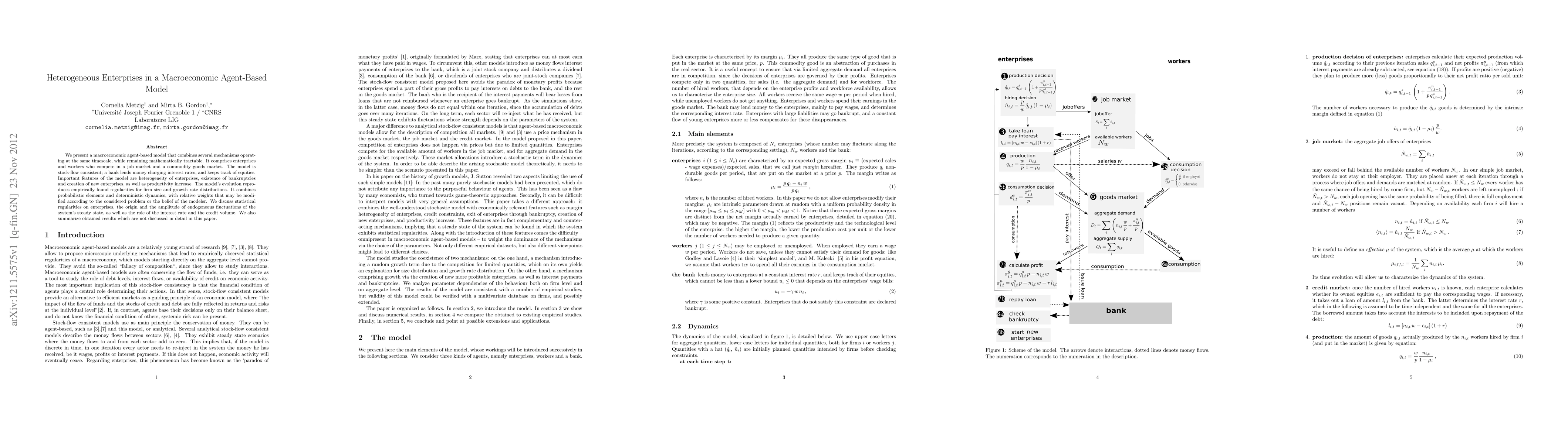 This paper introduces a macroeconomic agent-based model that integrates heterogeneous enterprises, workers, and a banking system, capturing firm size distributions and endogenous fluctuations. The model's features include enterprise bankruptcies, new enterprise creation, and productivity growth, and it reproduces empirically observed economic patterns.