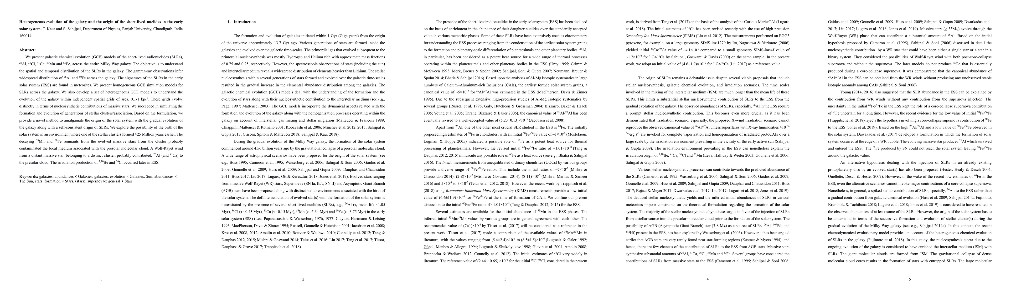This paper presents galactic chemical evolution models to understand the spatial and temporal distribution of short-lived radionuclides (SLRs) across the Milky Way. It proposes a novel method linking the origin of the early solar system to the gradual evolution of the galaxy, suggesting the solar system formed in a region influenced by decaying SLRs from an older stellar cluster.