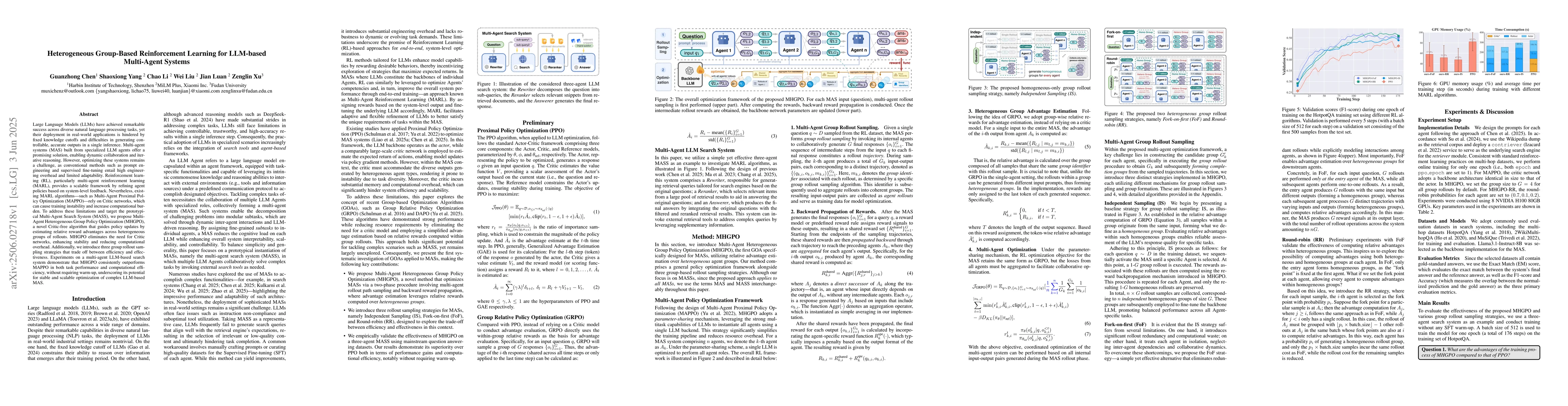 A new reinforcement learning algorithm called Multi-Agent Heterogeneous Group Policy Optimization (MHGPO) is proposed to optimize large language models in multi-agent systems, outperforming existing methods with improved stability and efficiency.