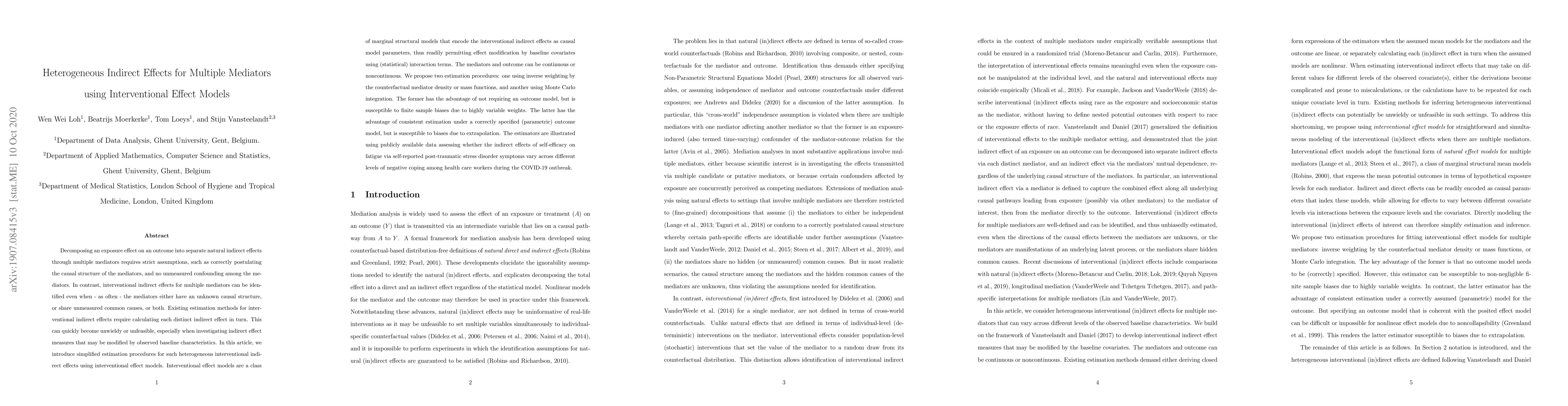 Decomposing an exposure effect on an outcome into separate natural indirect effects through multiple mediators requires strict assumptions, such as correctly postulating the causal structure of the mediators, and no unmeasured confounding among the mediators. In contrast, interventional indirect effects for multiple mediators can be identified even when - as often - the mediators either have an unknown causal structure, or share unmeasured common causes, or both. Existing estimation methods for interventional indirect effects require calculating each distinct indirect effect in turn. This can quickly become unwieldy or unfeasible, especially when investigating indirect effect measures that may be modified by observed baseline characteristics. In this article, we introduce simplified estimation procedures for such heterogeneous interventional indirect effects using interventional effect models. Interventional effect models are a class of marginal structural models that encode the interventional indirect effects as causal model parameters, thus readily permitting effect modification by baseline covariates using (statistical) interaction terms. The mediators and outcome can be continuous or noncontinuous. We propose two estimation procedures: one using inverse weighting by the counterfactual mediator density or mass functions, and another using Monte Carlo integration. The former has the advantage of not requiring an outcome model, but is susceptible to finite sample biases due to highly variable weights. The latter has the advantage of consistent estimation under a correctly specified (parametric) outcome model, but is susceptible to biases due to extrapolation.