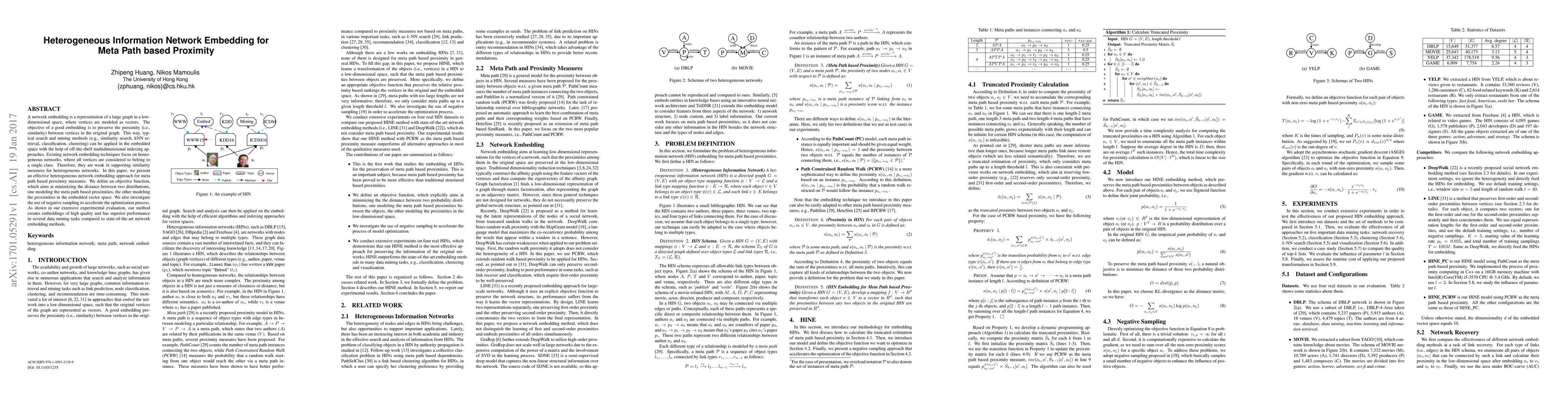 This paper proposes a method for embedding heterogeneous information networks into a low-dimensional space, preserving proximity based on meta paths. Unlike existing techniques, it focuses on multi-class networks, allowing for more nuanced proximity analysis and improved search and mining methods.