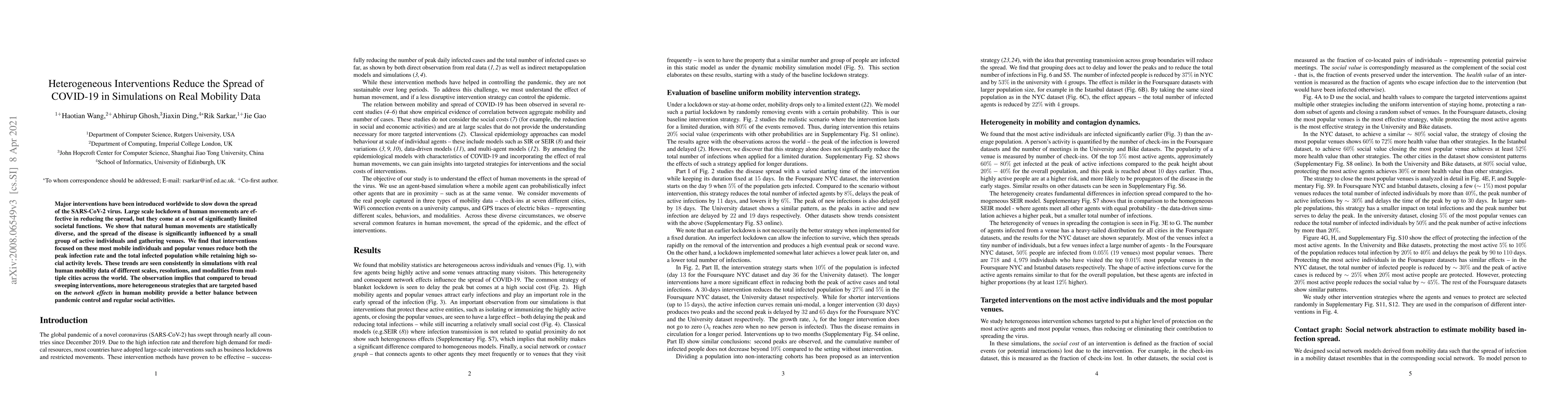 Major interventions have been introduced worldwide to slow down the spread of the SARS-CoV-2 virus. Large-scale lockdowns of human movements are effective in reducing the spread, but they come at a cost of significantly limited societal functions. We show that natural human movements are statistically diverse, and the spread of the disease is significantly influenced by a small group of active individuals and gathering venues. We find that interventions focused on these most mobile individuals and popular venues reduce both the peak infection rate and the total infected population while retaining high social activity levels. These trends are seen consistently in simulations with real human mobility data of different scales, resolutions, and modalities from multiple cities across the world. The observation implies that compared to broad sweeping interventions, more heterogeneous strategies that are targeted based on the network effects in human mobility provide a better balance between pandemic control and regular social activities.