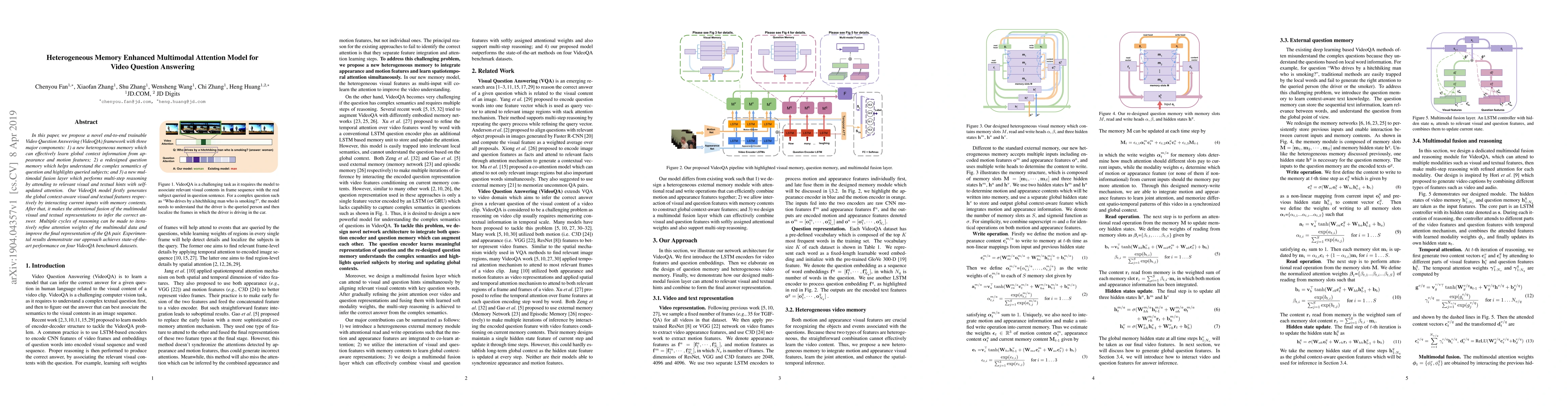 The technical contributions include a novel heterogeneous memory module, a redesigned question memory, and a multimodal fusion layer with self-updated attention for multi-step reasoning.