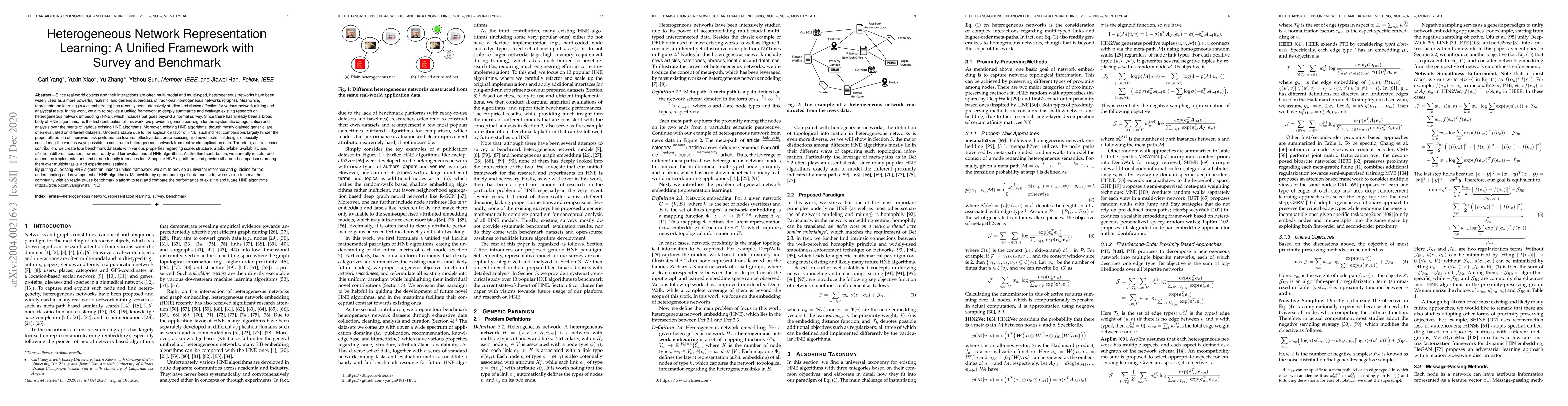 Since real-world objects and their interactions are often multi-modal and multi-typed, heterogeneous networks have been widely used as a more powerful, realistic, and generic superclass of traditional homogeneous networks (graphs). Meanwhile, representation learning (\aka~embedding) has recently been intensively studied and shown effective for various network mining and analytical tasks. In this work, we aim to provide a unified framework to deeply summarize and evaluate existing research on heterogeneous network embedding (HNE), which includes but goes beyond a normal survey. Since there has already been a broad body of HNE algorithms, as the first contribution of this work, we provide a generic paradigm for the systematic categorization and analysis over the merits of various existing HNE algorithms. Moreover, existing HNE algorithms, though mostly claimed generic, are often evaluated on different datasets. Understandable due to the application favor of HNE, such indirect comparisons largely hinder the proper attribution of improved task performance towards effective data preprocessing and novel technical design, especially considering the various ways possible to construct a heterogeneous network from real-world application data. Therefore, as the second contribution, we create four benchmark datasets with various properties regarding scale, structure, attribute/label availability, and \etc.~from different sources, towards handy and fair evaluations of HNE algorithms. As the third contribution, we carefully refactor and amend the implementations and create friendly interfaces for 13 popular HNE algorithms, and provide all-around comparisons among them over multiple tasks and experimental settings.