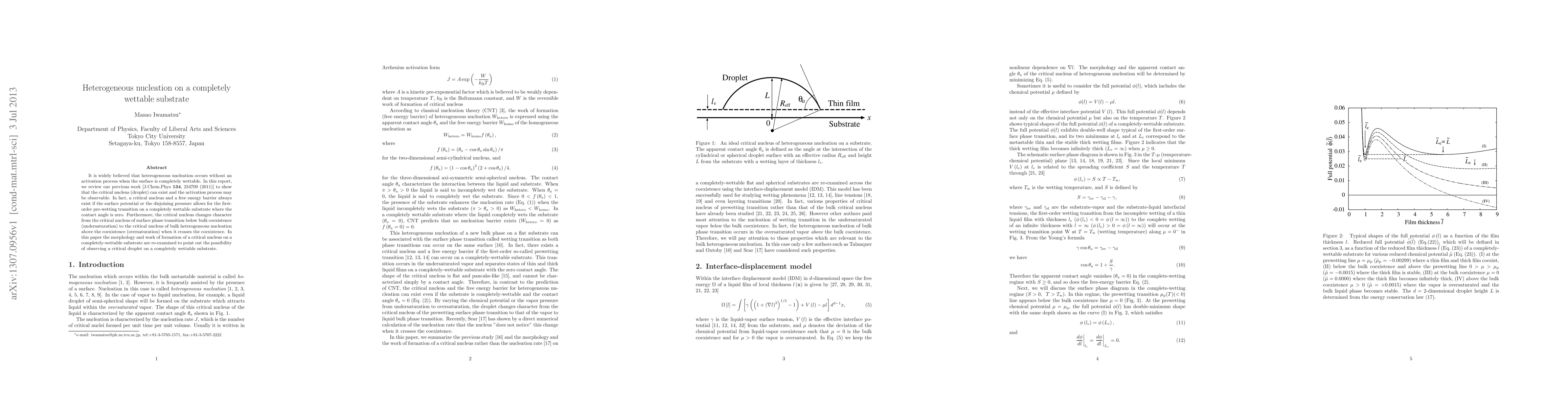 This paper revisits the concept of heterogeneous nucleation on completely wettable substrates, demonstrating that a critical nucleus and an activation process exist, contrary to common belief. The study highlights the existence of a free energy barrier and the transition of the critical nucleus's character from surface phase transition to bulk nucleation.