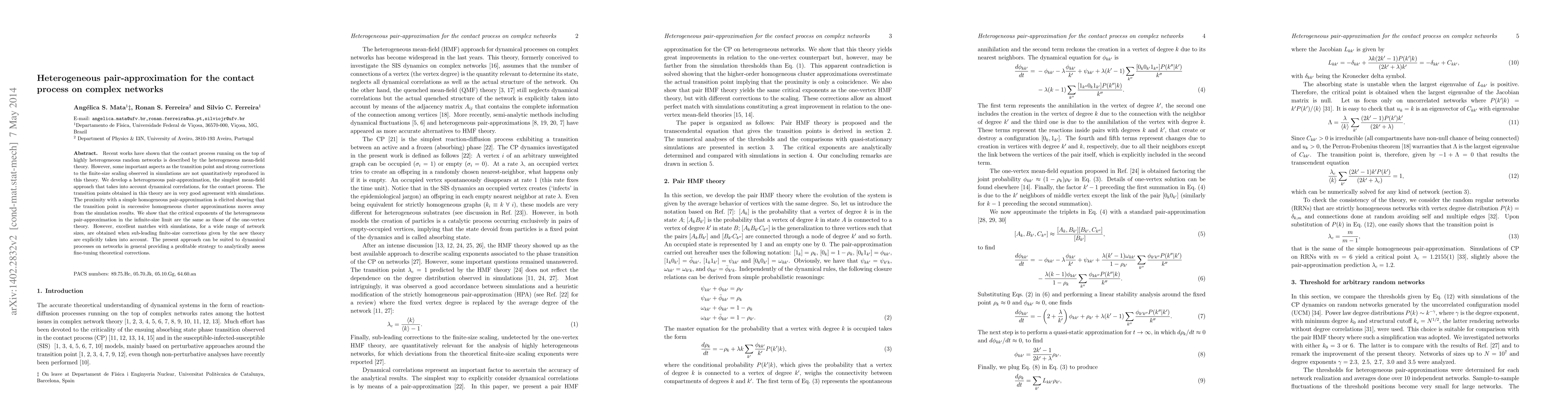 The development of a heterogeneous pair approximation for the contact process on complex networks that captures sub-leading finite-size corrections, leading to improved agreement with simulation results.