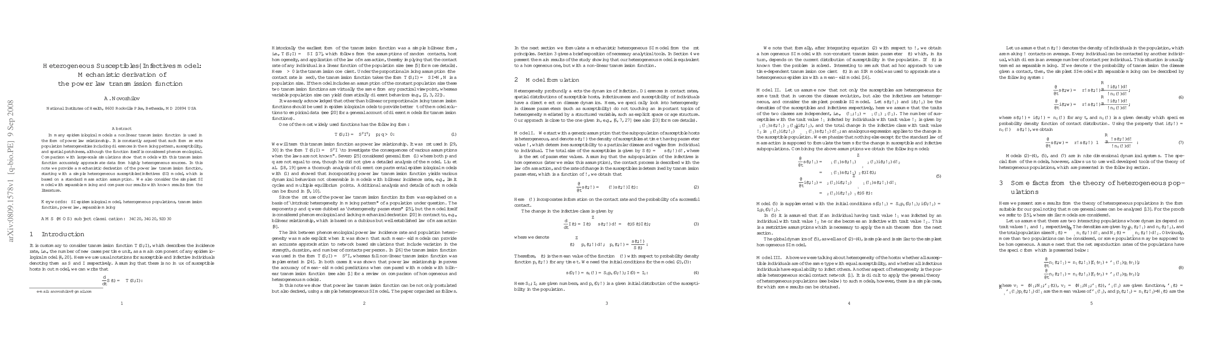 In many epidemiological models a nonlinear transmission function is used in the form of power law relationship. It is constantly argued that such form reflects population heterogeneities including differences in the mixing pattern, susceptibility, and spatial patchiness, although the function itself is considered phenomenological. Comparison with large-scale simulations show that models with this transmission function accurately approximate data from highly heterogeneous sources. In this note we provide a mechanistic derivation of the power law transmission function, starting with a simple heterogeneous susceptibles--infectives (SI) model, which is based on a standard mass action assumption. We also consider the simplest SI model with separable mixing and compare our results with known results from the literature.