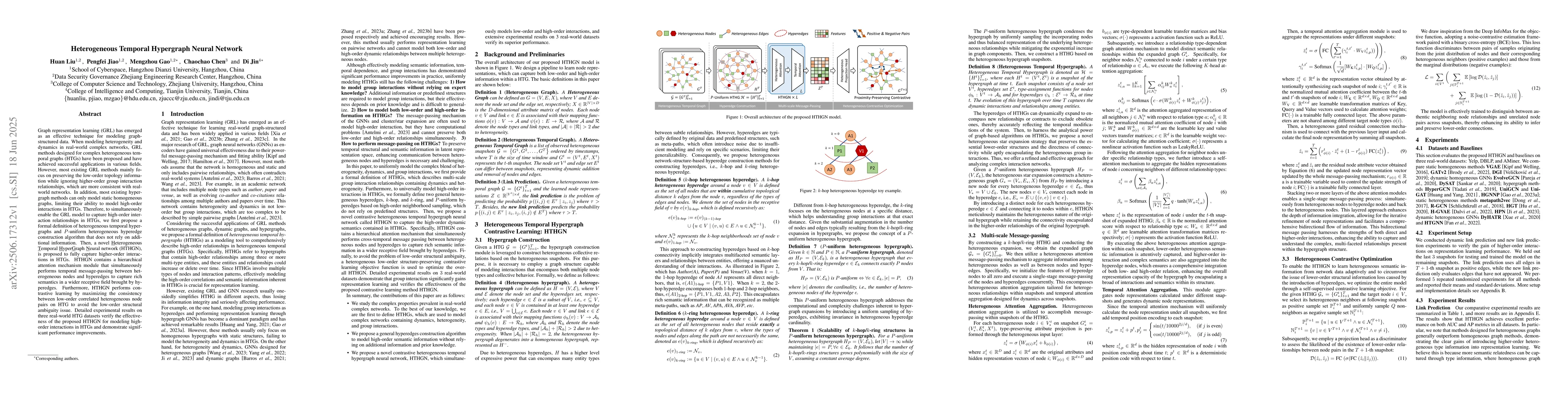 The research introduces Heterogeneous Temporal HyperGraph Neural Network (HTHGN) to model high-order interactions in complex, evolving, and diverse networks (HTGs). HTHGN utilizes a hierarchical attention mechanism for temporal message-passing and contrastive learning to address low-order structural ambiguity, significantly outperforming existing methods in experiments on real-world HTG datasets.