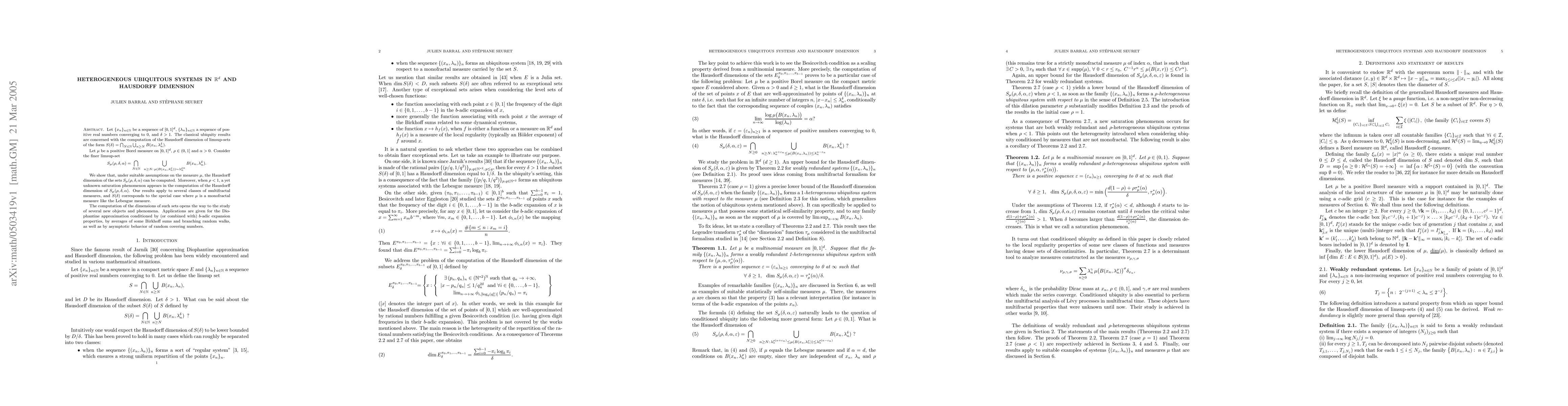 Let $\{x\_n\}\_{n\geq 0}$ be a sequence of $[0,1]^d$, $\{\lambda\_n\} \_{n\geq 0}$ a sequence of positive real numbers converging to 0, and $\delta>1$. Let $\mu$ be a positive Borel measure on $[0,1]^d$, $\rho\in (0,1]$ and $\alpha>0$. Consider the limsup-set \[S\_{\mu}(\rho,\delta,\alpha)= \bigcap\_{N\in \mathbb{N}} \bigcup \_{n\geq N: \mu(B(x\_n,\lambda^\rho\_n)) \sim \lambda\_n^{\rho\alpha}} B(x\_n,\lambda\_n^\delta).\] We show that, under suitable assumptions on the measure $\mu$, the Hausdorff dimension of the sets $S\_{\mu}(\rho,\delta,\alpha)$ can be computed. When $\rho<1$, a yet unknown saturation phenomenon appears in the computation of the Hausdorff dimension of $S\_{\mu} (\rho,\delta, \alpha)$. Our results apply to several classes of multifractal measures $\mu$. The computation of the dimensions of such sets opens the way to the study of several new objects and phenomena. Applications are given for the Diophantine approximation conditioned by (or combined with) $b$-adic expansion properties, by averages of some Birkhoff sums and by asymptotic behavior of random covering numbers.