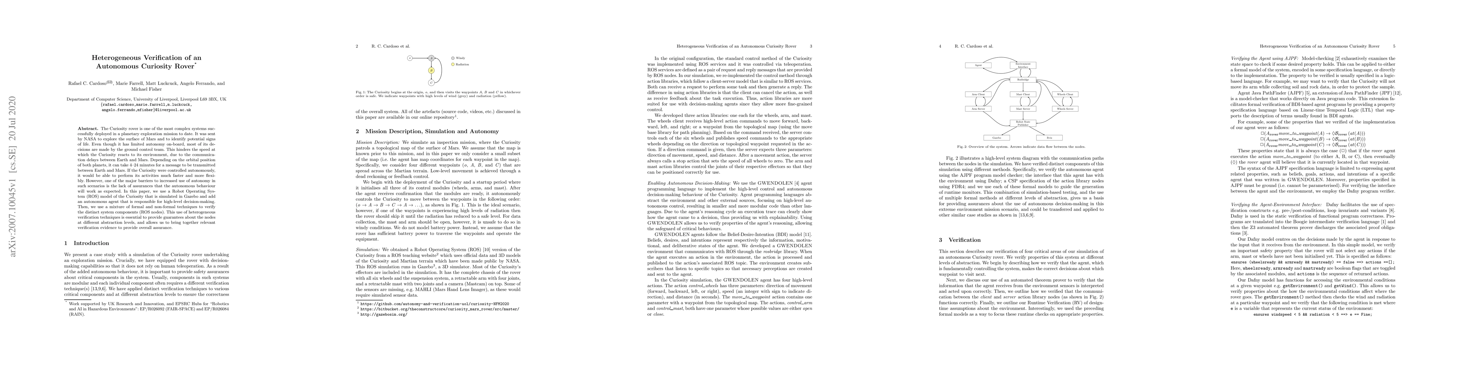 This paper uses heterogeneous verification techniques to ensure autonomous Curiosity rover behaves as expected on Mars, improving its speed and flexibility in decision-making.