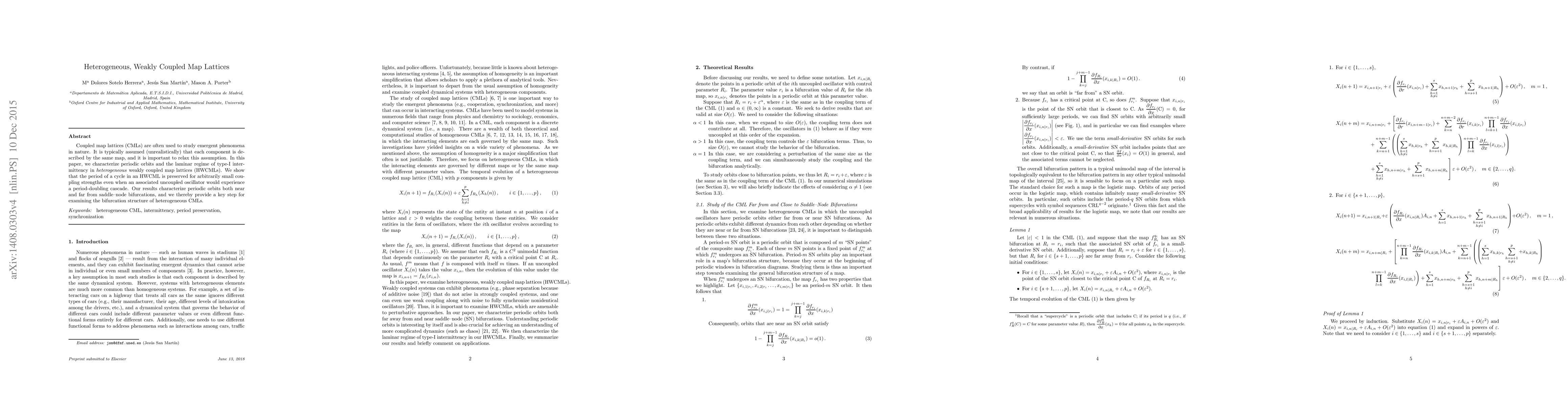 This paper investigates heterogeneous weakly coupled map lattices (HWCMLs) to study emergent phenomena, focusing on periodic orbits and type-I intermittency. It reveals that the period of cycles in HWCMLs remains stable even with minimal coupling, contrasting with period-doubling cascades in uncoupled oscillators.