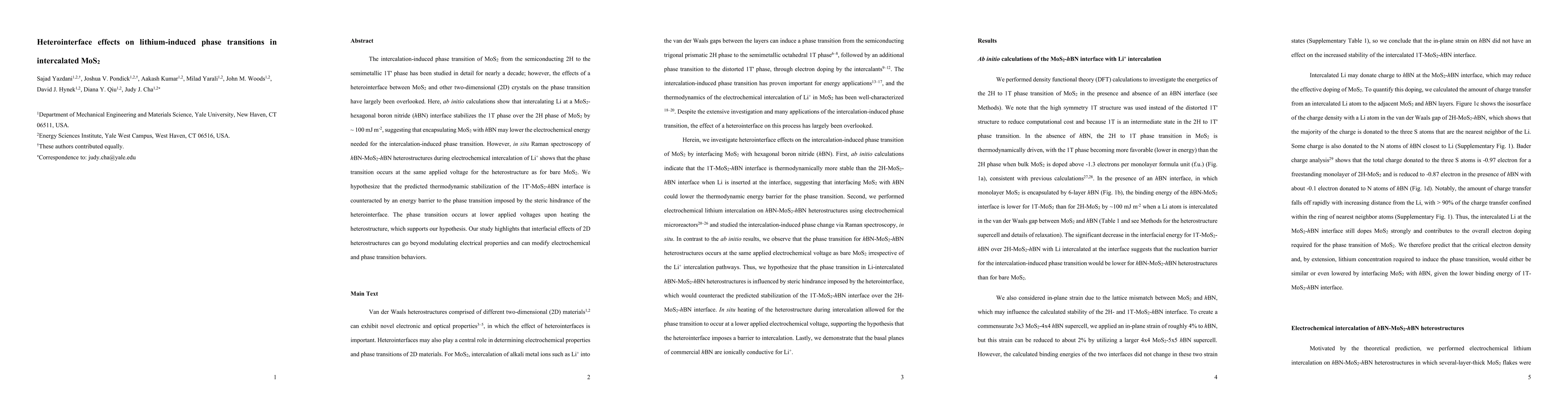 The paper presents detailed ab initio calculations demonstrating how the hBN-MoS2 heterointerface affects lithium-induced phase transitions, providing insights into the role of heterointerfaces in modulating electrochemical and phase transition behaviors in 2D materials.