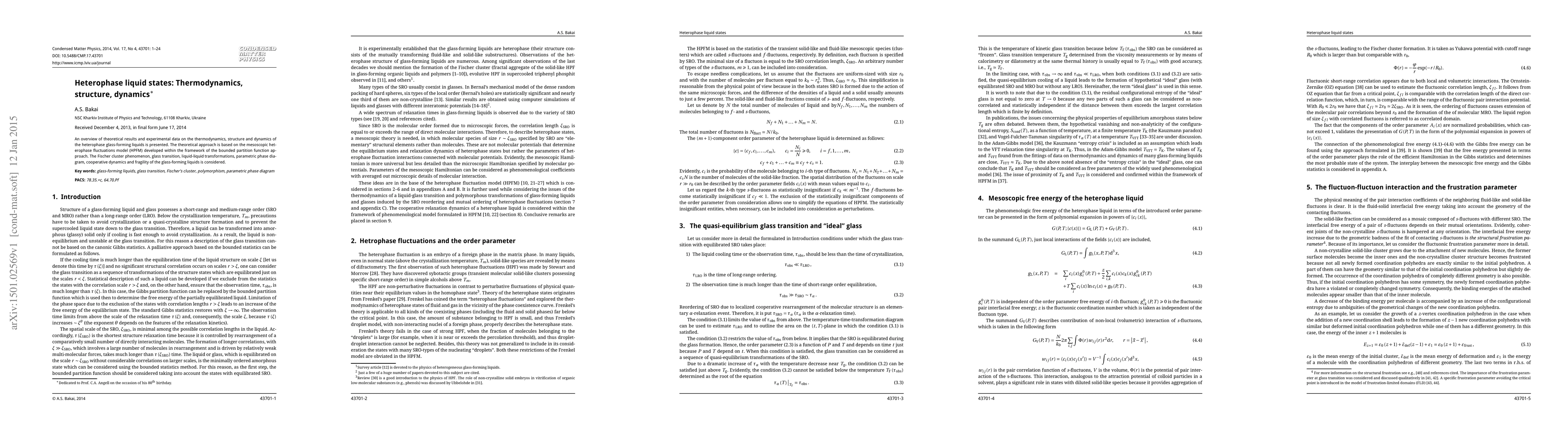 An overview of theoretical results and experimental data on the thermodynamics, structure and dynamics of the heterophase glass-forming liquids is presented. The theoretical approach is based on the mesoscopic heterophase fluctuations model (HPFM) developed within the framework of the bounded partition function approach. The Fischer cluster phenomenon, glass transition, liquid-liquid transformations, parametric phase diagram, cooperative dynamics and fragility of the glass-forming liquids is considered.