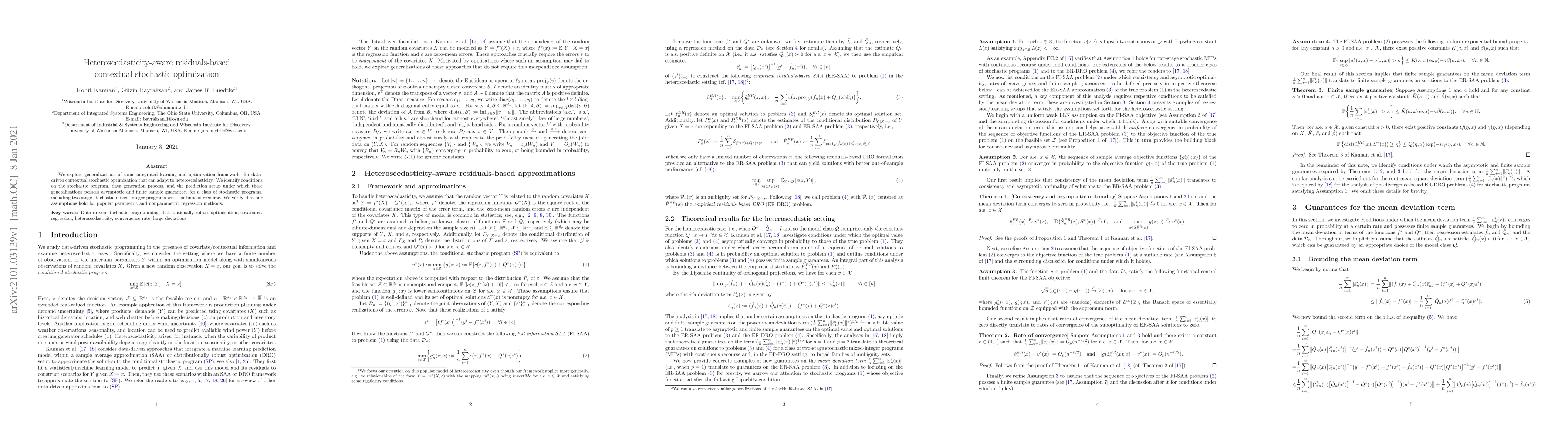 This paper proposes advanced optimization frameworks for contextual stochastic optimization that accommodate heteroscedasticity. It establishes conditions ensuring these frameworks provide reliable performance both asymptotically and in finite samples, validated through common regression methods.