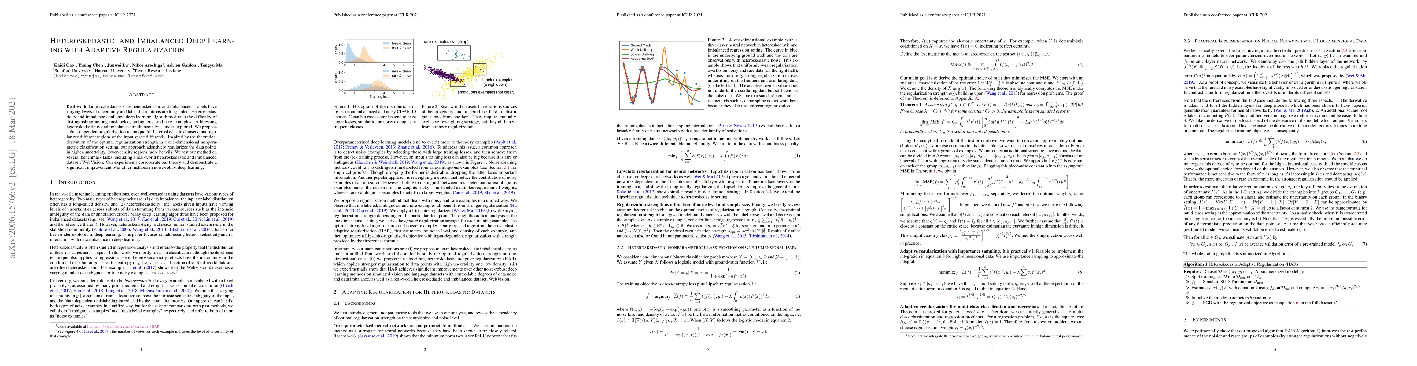 The paper presents a novel adaptive regularization technique for deep learning models that varies regularization strength based on data uncertainty and density, providing a unified framework for handling heteroskedastic and imbalanced datasets.