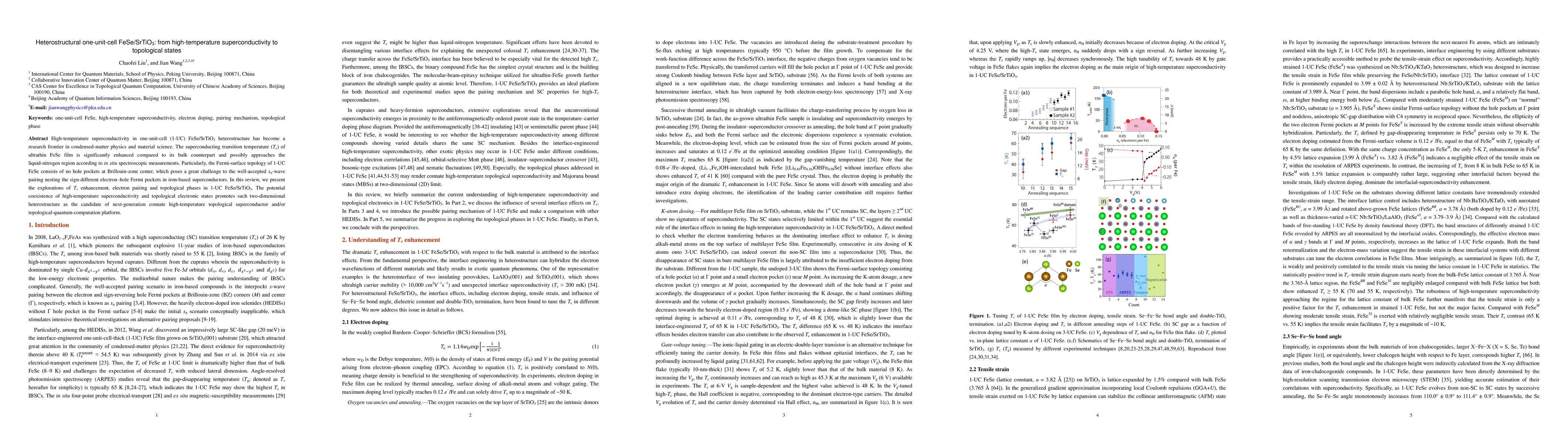 This paper reviews the significant enhancement of high-temperature superconductivity in a one-unit-cell FeSe film on SrTiO3, potentially reaching the liquid nitrogen temperature range. It explores the unique Fermi surface topology and the implications for electron pairing and topological states, suggesting the material could serve as a next-generation topological superconductor.