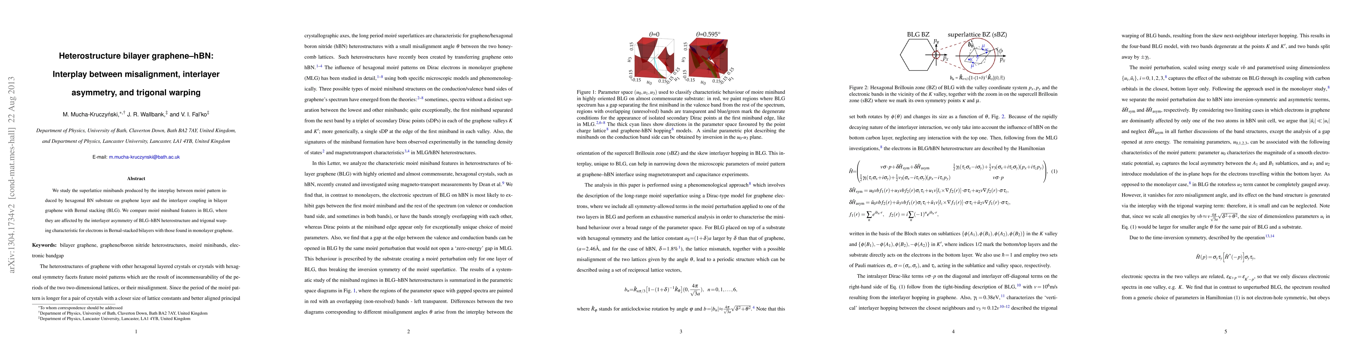 This research investigates the moiré superlattice minibands in bilayer graphene on hexagonal boron nitride (hBN) substrates, examining how misalignment, interlayer asymmetry, and trigonal warping influence these minibands, and compares them to those in monolayer graphene.