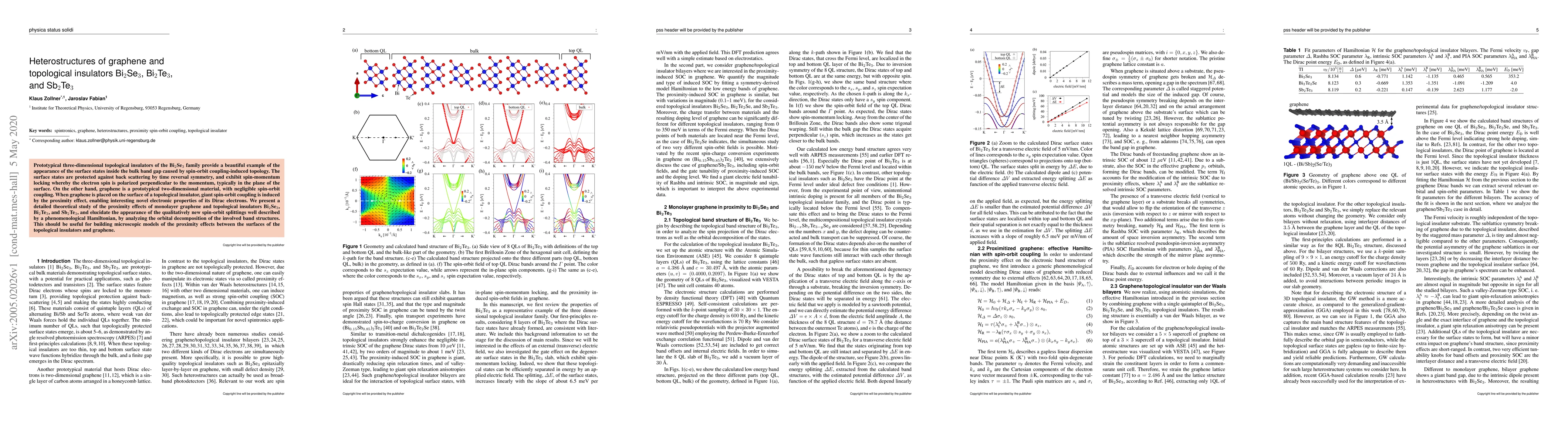 This paper investigates the proximity-induced effects when monolayer graphene is placed on topological insulators Bi$_2$Se$_3$, Bi$_2$Te$_3$, and Sb$_2$Te$_3$, demonstrating significant spin-orbit coupling and new spin-orbit splittings, and proposes a phenomenological Hamiltonian to describe these novel electronic properties.