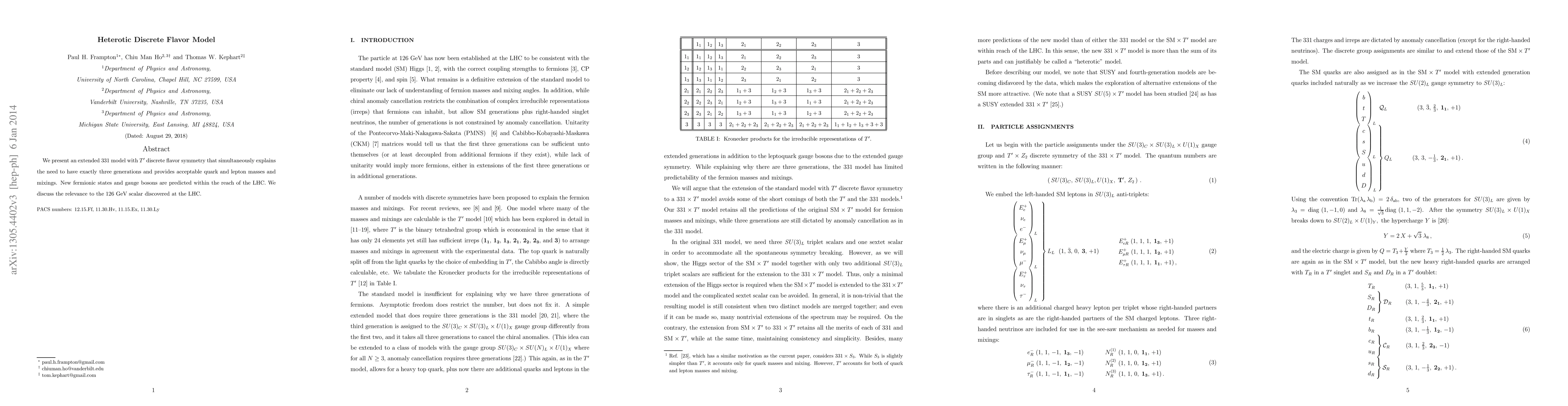 We present an extended 331 model with $T'$ discrete flavor symmetry that simultaneously explains the need to have exactly three generations and provides acceptable quark and lepton masses and mixings. New fermionic states and gauge bosons are predicted within the reach of the LHC. We discuss the relevance to the 126 GeV scalar discovered at the LHC.