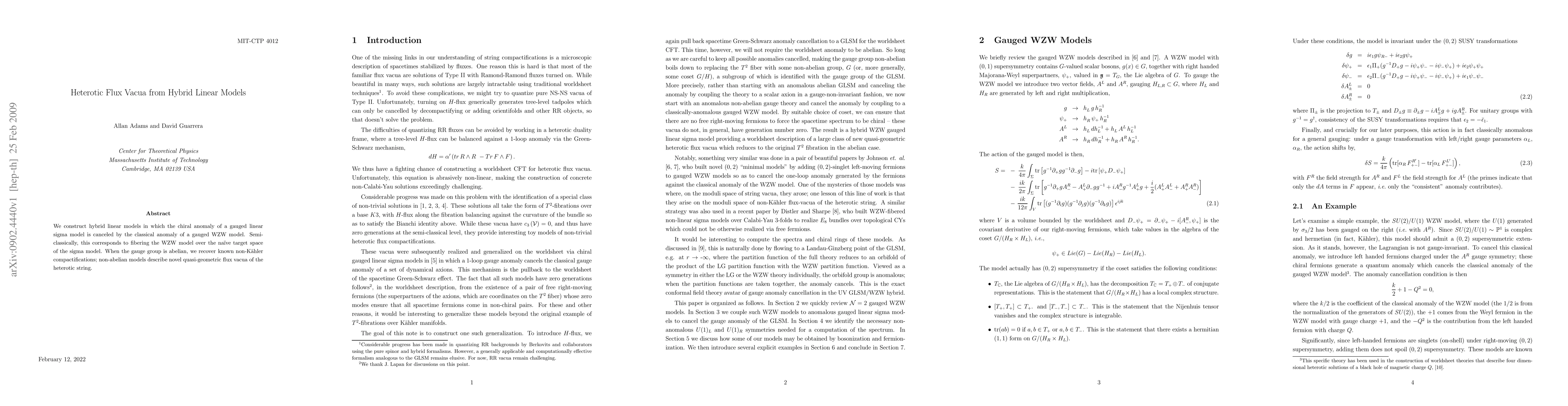 This paper constructs hybrid linear models that cancel chiral anomalies in gauged linear sigma models via classical anomalies in gauged WZW models, leading to novel quasi-geometric flux vacua in heterotic string theory, particularly for non-abelian gauge groups.