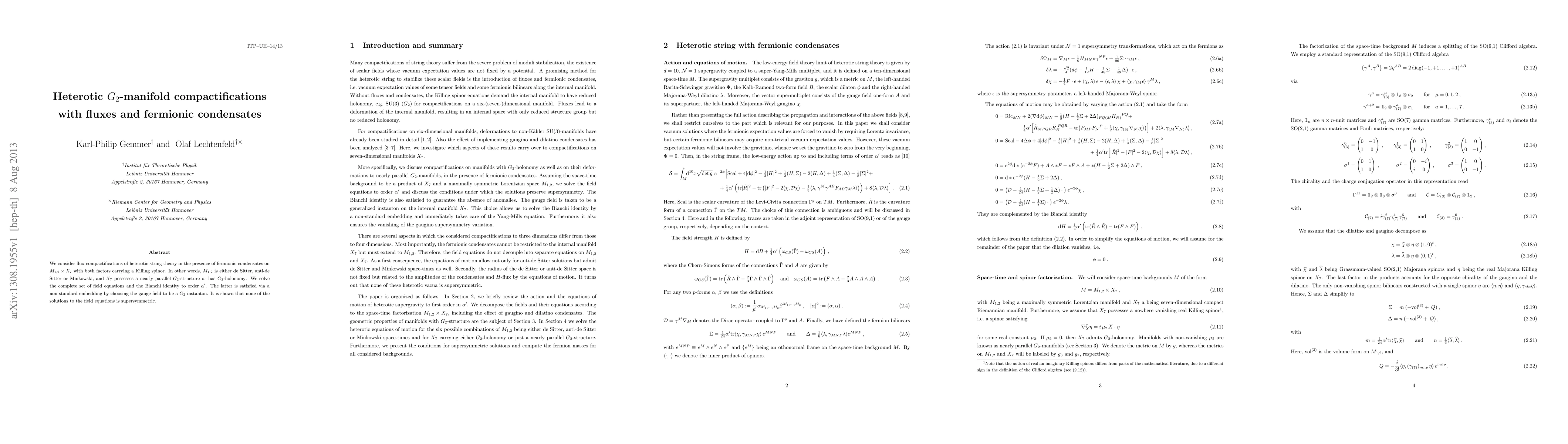 This paper explores flux compactifications of heterotic string theory on M_{1,2} × X_7 with both spaces supporting Killing spinors, analyzing the presence of fermionic condensates and G_2-manifolds. The authors solve the field equations and Bianchi identity, revealing that none of the solutions obtained is supersymmetric.