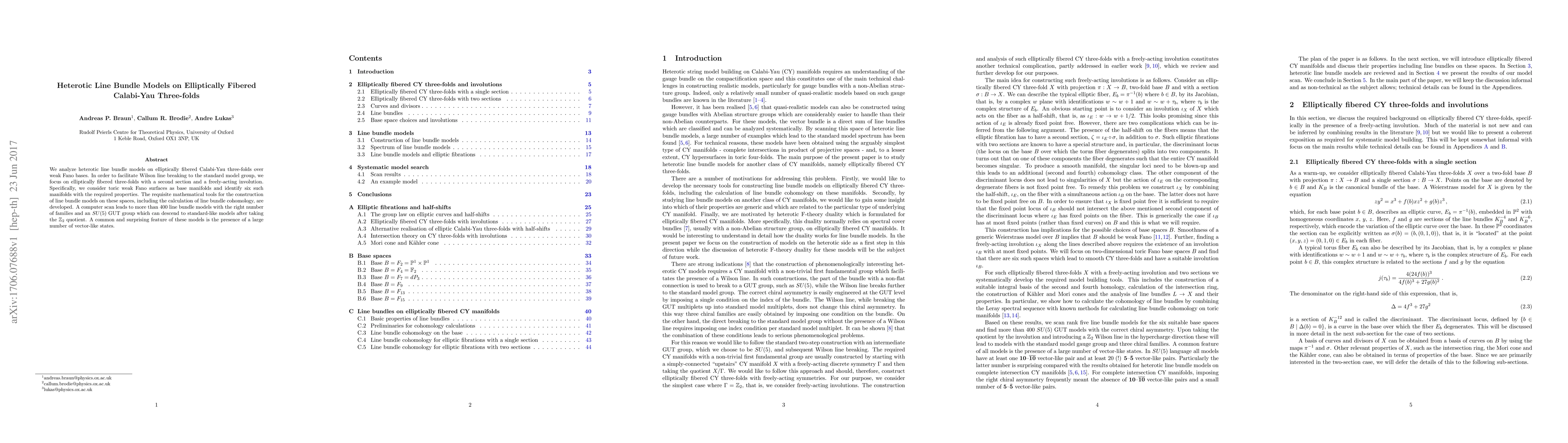 We analyze heterotic line bundle models on elliptically fibered Calabi-Yau three-folds over weak Fano bases. In order to facilitate Wilson line breaking to the standard model group, we focus on elliptically fibered three-folds with a second section and a freely-acting involution. Specifically, we consider toric weak Fano surfaces as base manifolds and identify six such manifolds with the required properties. The requisite mathematical tools for the construction of line bundle models on these spaces, including the calculation of line bundle cohomology, are developed. A computer scan leads to more than $400$ line bundle models with the right number of families and an $SU(5)$ GUT group which can descend to standard-like models after taking the $\mathbb{Z}_2$ quotient. A common and surprising feature of these models is the presence of a large number of vector-like states.
