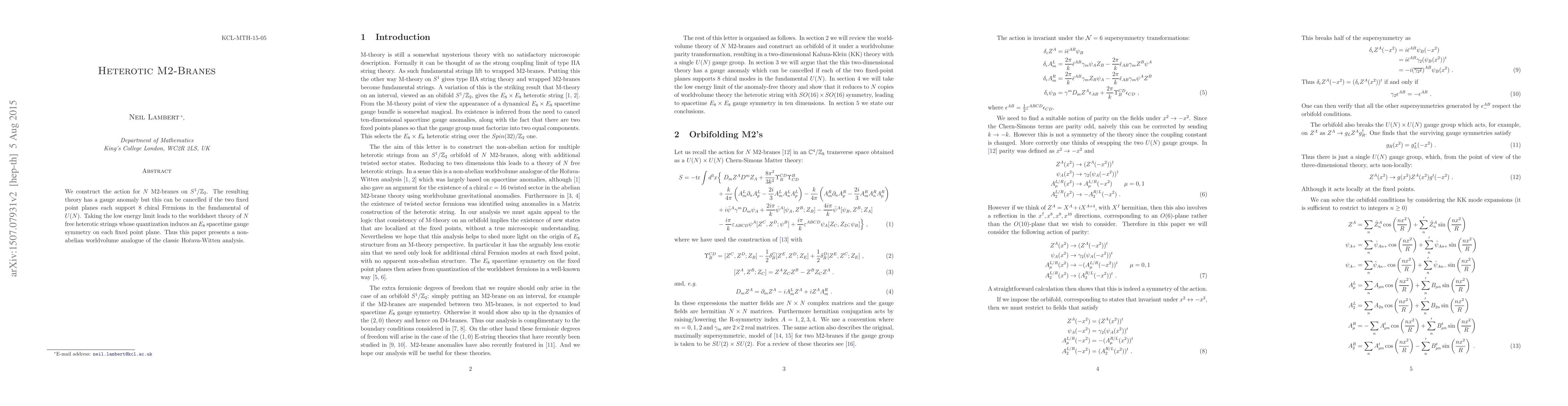 We construct the action for N M2-branes on $S^1/{Z}_2$. The resulting theory has a gauge anomaly but this can be cancelled if the two fixed point planes each support 8 chiral Fermions in the fundamental of U(N). Taking the low energy limit leads to the worldsheet theory of N free heterotic strings whose quantization induces an $E_8$ spacetime gauge symmetry on each fixed point plane. Thus this paper presents a non-abelian worldvolume analogue of the classic Horava-Witten analysis.