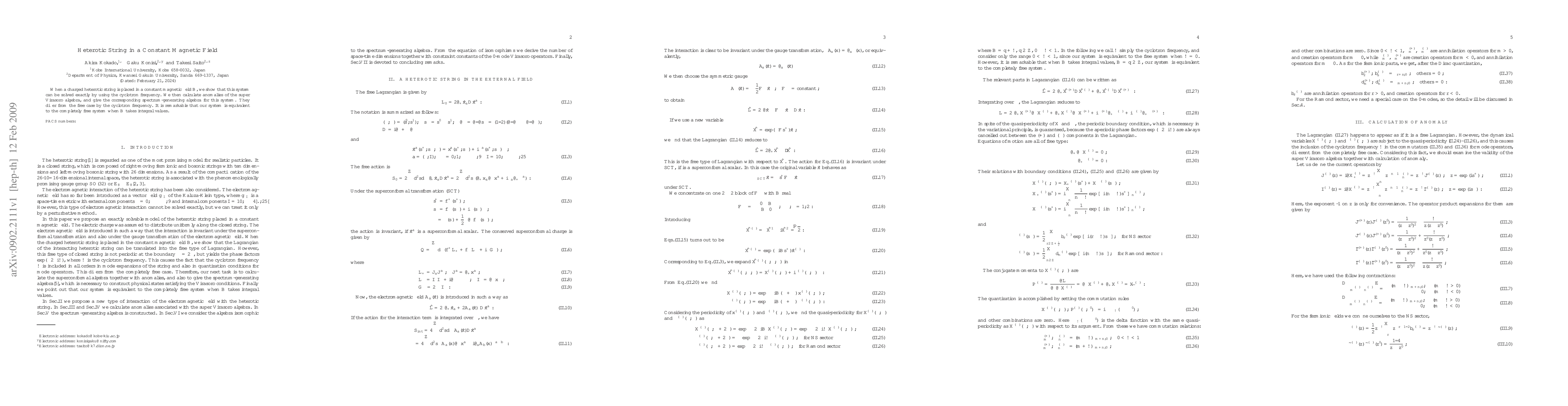 When a charged heterotic string is placed in a constant magnetic field B, we show that this system can be solved exactly by using the cyclotron frequency. We then calculate anomalies of the super Virasoro algebra, and give the corresponding spectrum-generating algebra for this system. They differ from the free case by the cyclotron frequency. It is remarkable that our system is equivalent to the completely free system when B takes integral values.