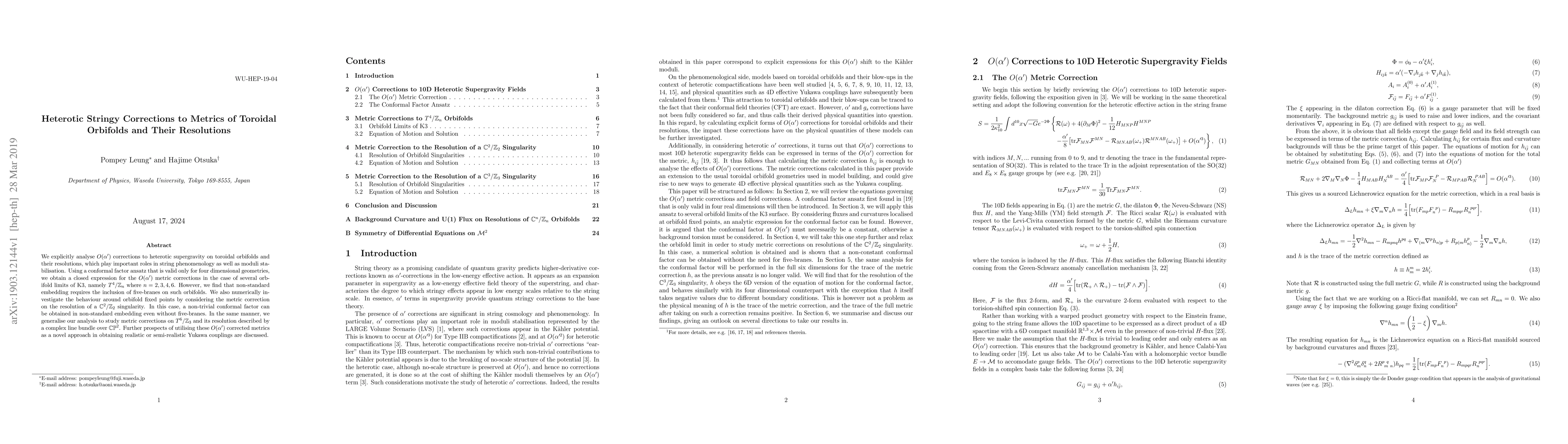 This paper investigates $O(\alpha')$ stringy corrections to the metrics of toroidal orbifolds and their resolutions, focusing on K3 orbifolds and $T^4/\mathbb{Z}_n$ cases. It provides a closed expression for these corrections and explores their implications for moduli stabilisation and potential applications in obtaining realistic Yukawa couplings.