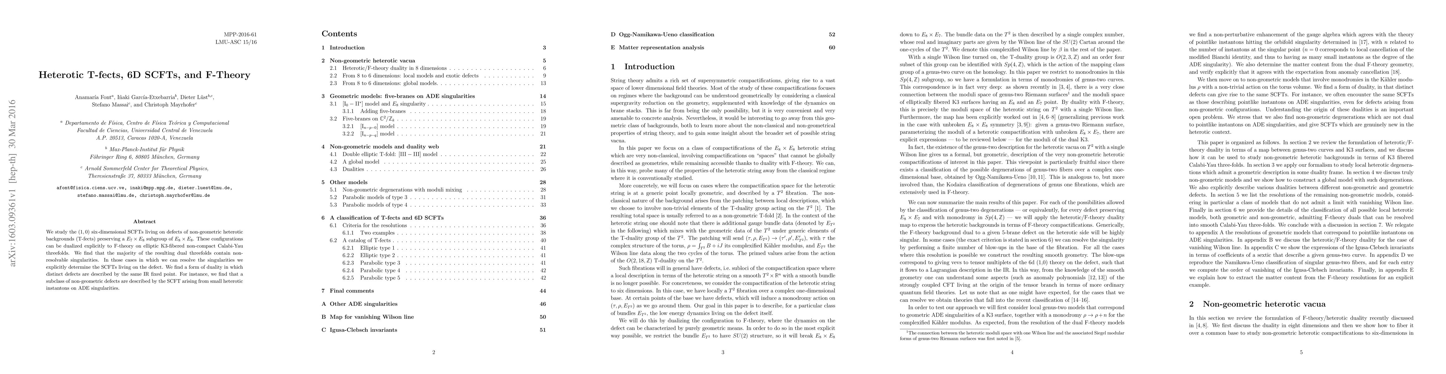 Researchers study 6D SCFTs on non-geometric backgrounds and find a form of duality where distinct defects describe the same IR fixed point, shedding light on the connection between heterotic T-fects, F-theory, and Calabi-Yau threefolds.