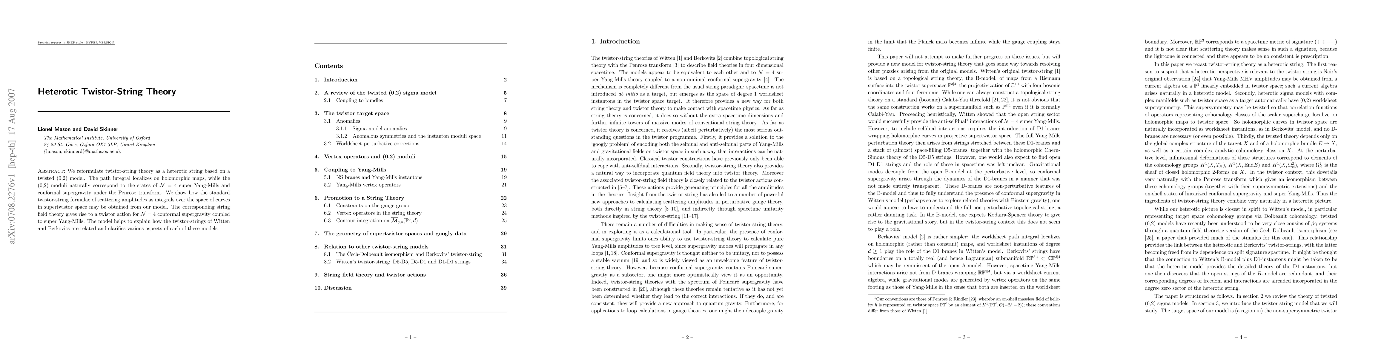 This paper reformulates twistor-string theory as a heterotic string based on a (0,2) model, localizing the path integral on holomorphic maps. It elucidates the connection between twistor strings and states in N=4 super Yang-Mills and conformal supergravity, providing a twistor action for their coupling and clarifying the relationships between different twistor-string models.