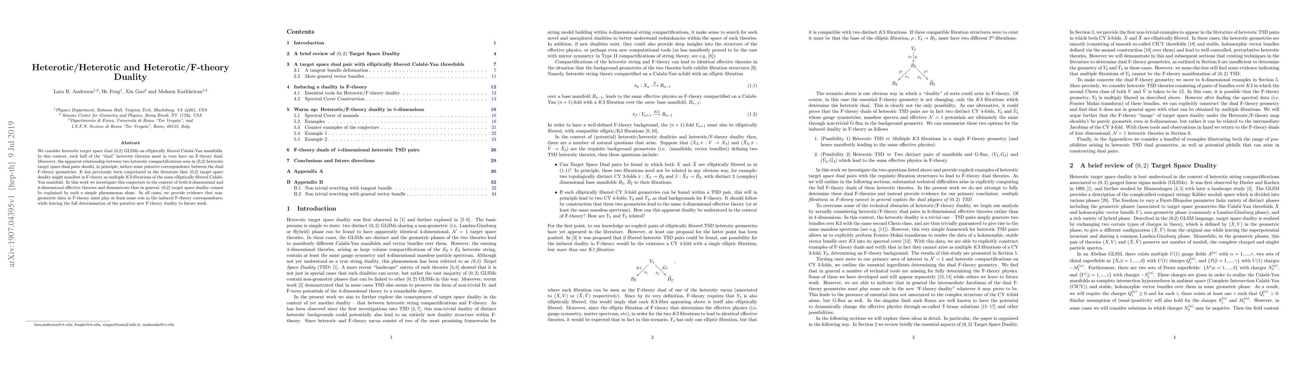This research explores the heterotic/F-theory duality in the context of (0,2) GLSMs on elliptically fibered Calabi-Yau manifolds, revealing that (0,2) target space duality does not simply manifest as multiple K3-fibrations, but involves non-geometric data in F-theory. The study provides evidence that a full F-theory correspondence remains an open question.