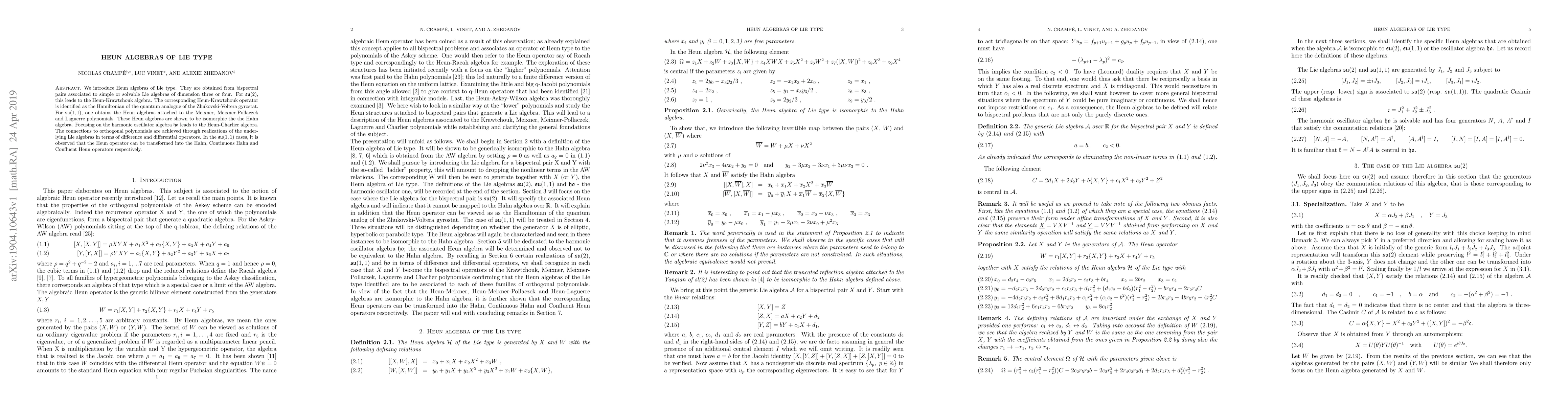 This paper introduces Heun algebras of Lie type derived from bispectral pairs linked to simple or solvable Lie algebras, notably $\mathfrak{su}(2)$ and $\mathfrak{su}(1,1)$. It identifies specific Heun algebras associated with various orthogonal polynomials and demonstrates their isomorphism to the Hahn algebra.