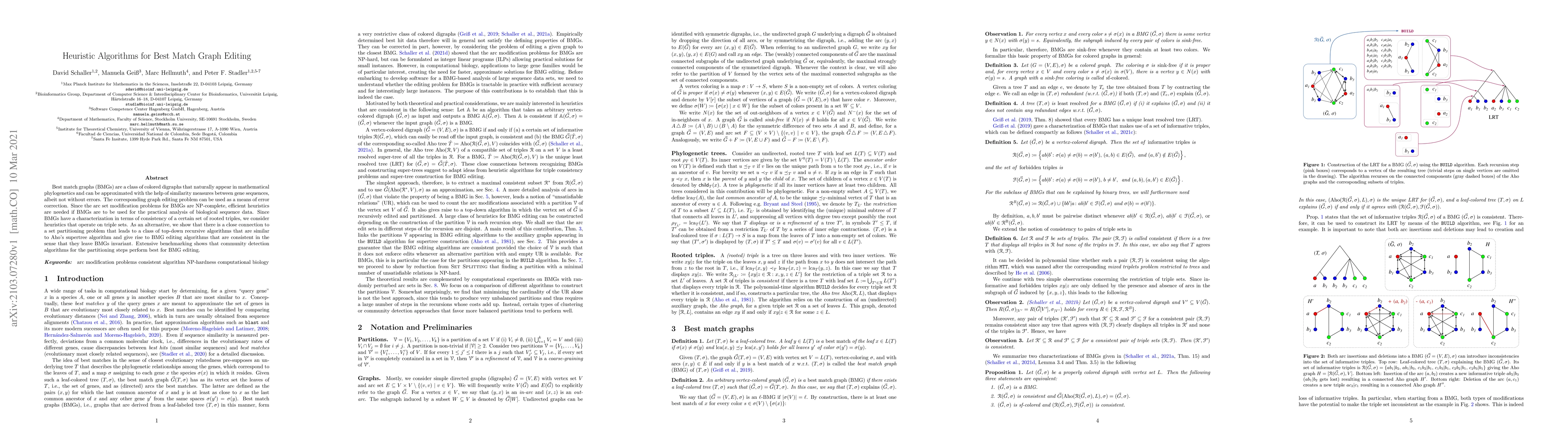 Best match graphs (BMGs) are a class of colored digraphs that naturally appear in mathematical phylogenetics and can be approximated with the help of similarity measures between gene sequences, albeit not without errors. The corresponding graph editing problem can be used as a means of error correction. Since the arc set modification problems for BMGs are NP-complete, efficient heuristics are needed if BMGs are to be used for the practical analysis of biological sequence data. Since BMGs have a characterization in terms of consistency of a certain set of rooted triples, we consider heuristics that operate on triple sets. As an alternative, we show that there is a close connection to a set partitioning problem that leads to a class of top-down recursive algorithms that are similar to Aho's supertree algorithm and give rise to BMG editing algorithms that are consistent in the sense that they leave BMGs invariant. Extensive benchmarking shows that community detection algorithms for the partitioning steps perform best for BMG editing.
