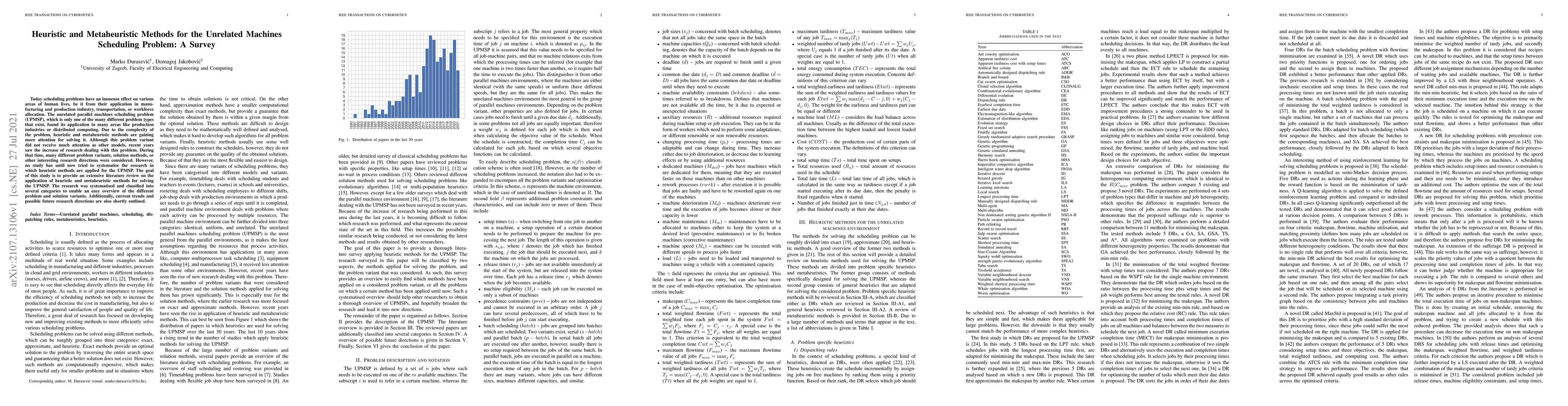 This paper provides an extensive literature review on heuristic and metaheuristic methods applied to solve the unrelated parallel machines scheduling problem (UPMSP). It systematizes and classifies existing research to offer an easy overview of different problem and solution variants, along with current trends and future research directions.